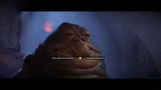 Jabbaに回路図を提供することを選択した場合、Jabbaからあなたの場所を知っているように言う以外に、Jabbaから大きな脂肪はありません。しかし、あなたはすべきです回路図を維持することを決定します、ジャバはあなたの嘘を見て、後であなたの借金を集めると言うだけです。このオプションの利点は、回路図を維持し、甘い2000クレジットで販売できるという事実です。