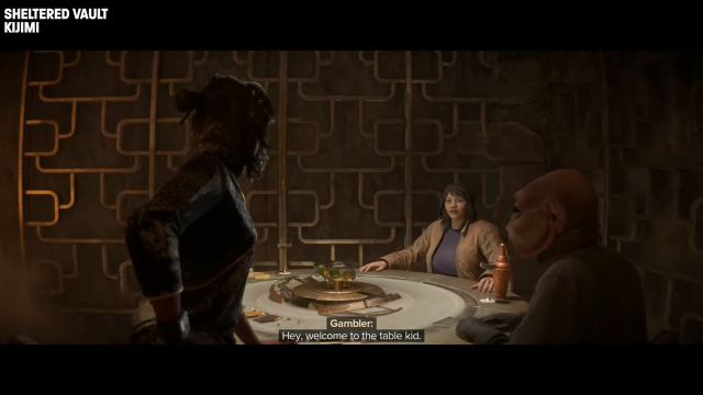 ジェットコルドのレガシークエストの最後の金庫は、キジミにあります。 Intelの最初のビットを拾うには、Kijimi Cityに向かい、サーマル地区の横にある都市の東の小さな橋。インテルを拾い上げ、泥棒クォーターに導きます。クエストに関する詳細情報を取得するために、Sabaccのゲームに勝つ必要があるギャンブルの巣に向かいます。