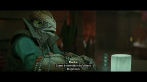 ケイはキャラクターとして即座に好感が持て、ささいな犯罪を超えた彼女の経験不足と素朴さが魅力を増します。彼女はまた、ニックスと呼ばれる仲間を持っています。ニックスは、真のスターウォーズのファッションで、信じられないほどかわいく、いつも彼女のそばにいます。画面の後ろの目に見えないプレーヤーと話をする代わりに、ケイはニックスとコミュニケーションを取ります。これは、メインキャラクターが実際の生活で誰もしないことをしていないゲームで通常感じる切断を回避する良い方法です。