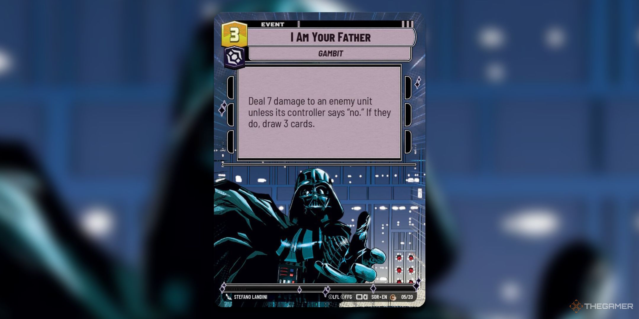 私はあなたのお父さんですスターウォーズの最大の公開の1つを再現します。もはや衝撃的なひねりではありませんが、このラインはポップカルチャーで繰り返し引用されており、より現代的なミームの時代の前に急速に広がっています。このカードは、その象徴的な瞬間を捉えていますが、相手に大きな瞬間をロールプレイするようにするルールもあります。