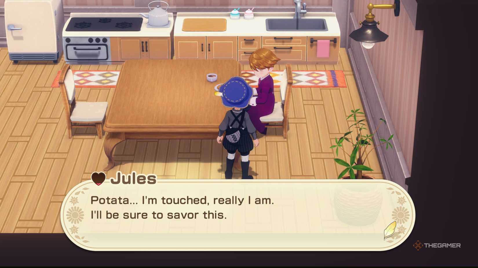 この日を通して温かいレシピを誰かに贈るとき、あなたはそれらにいくつかの余分な心ポイントを得るだけでなく、見返りに調理済みの料理も得ます。残念ながら、この返品料理は炉床の日には適用できないので、無限のループを作ることはできませんそれで。あなたの最初の炉床の日に、市長はあなたに3つの鍋を与えて、町でお気に入りの人々に贈ります。