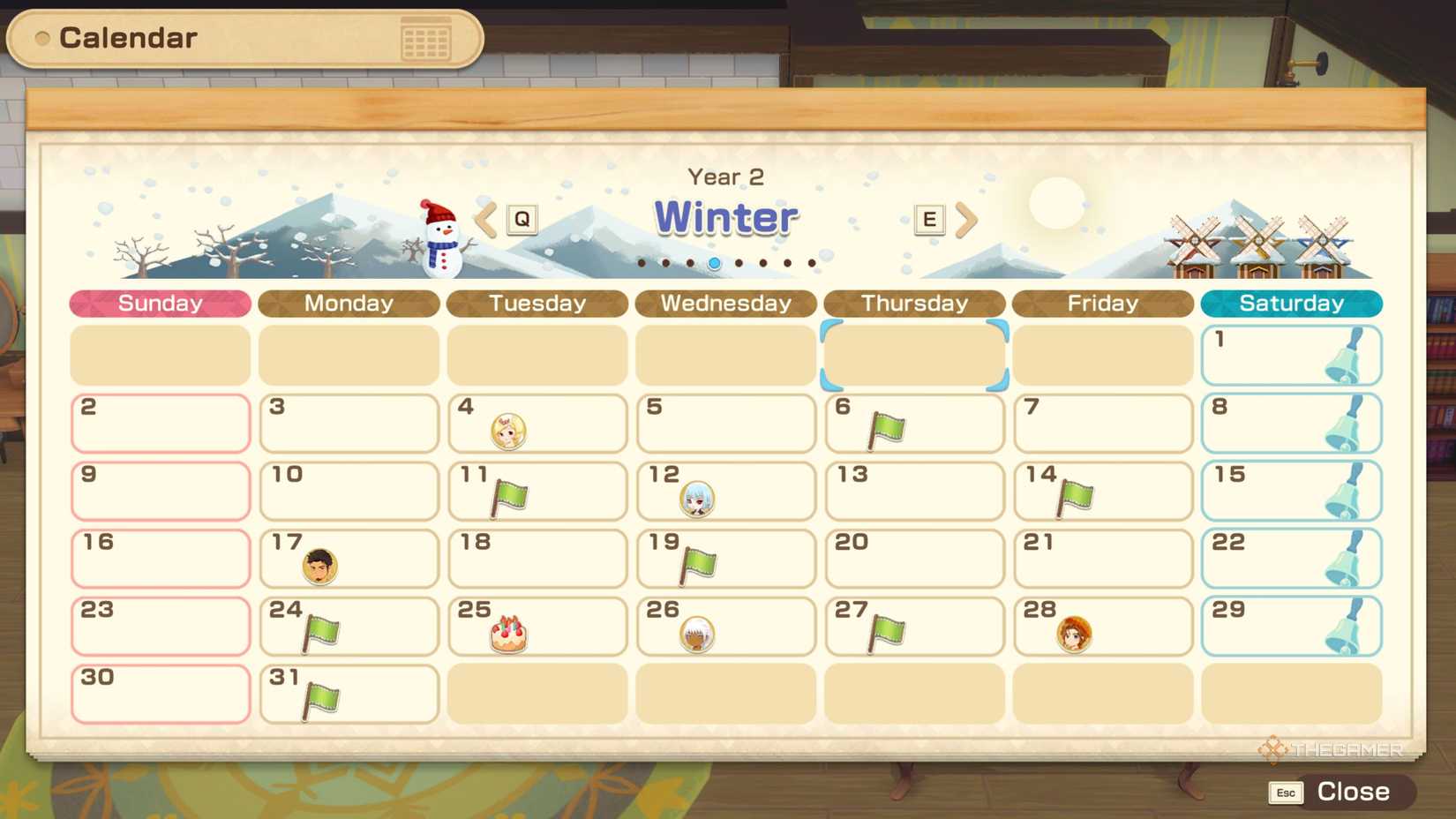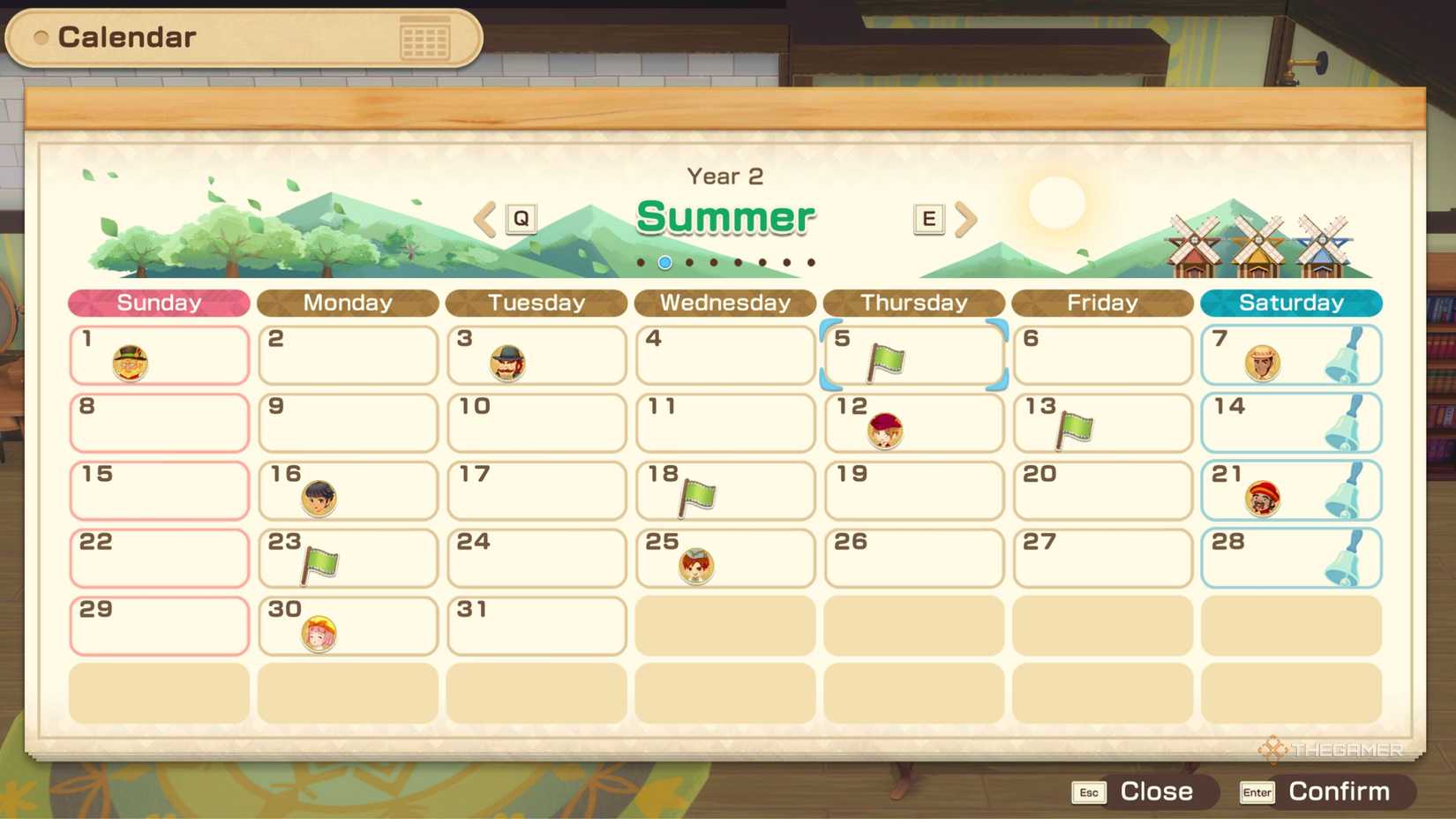 季節ごとに異なる年にわたる農業シミュレーターに期待するように、季節の物語:グランドバザールまた、年間を通して参加できる複数のフェスティバルがあります。これらのフェスティバルは、あなたの家のカレンダーの緑の旗としてマークされており、それぞれが異なる方法で働いています。