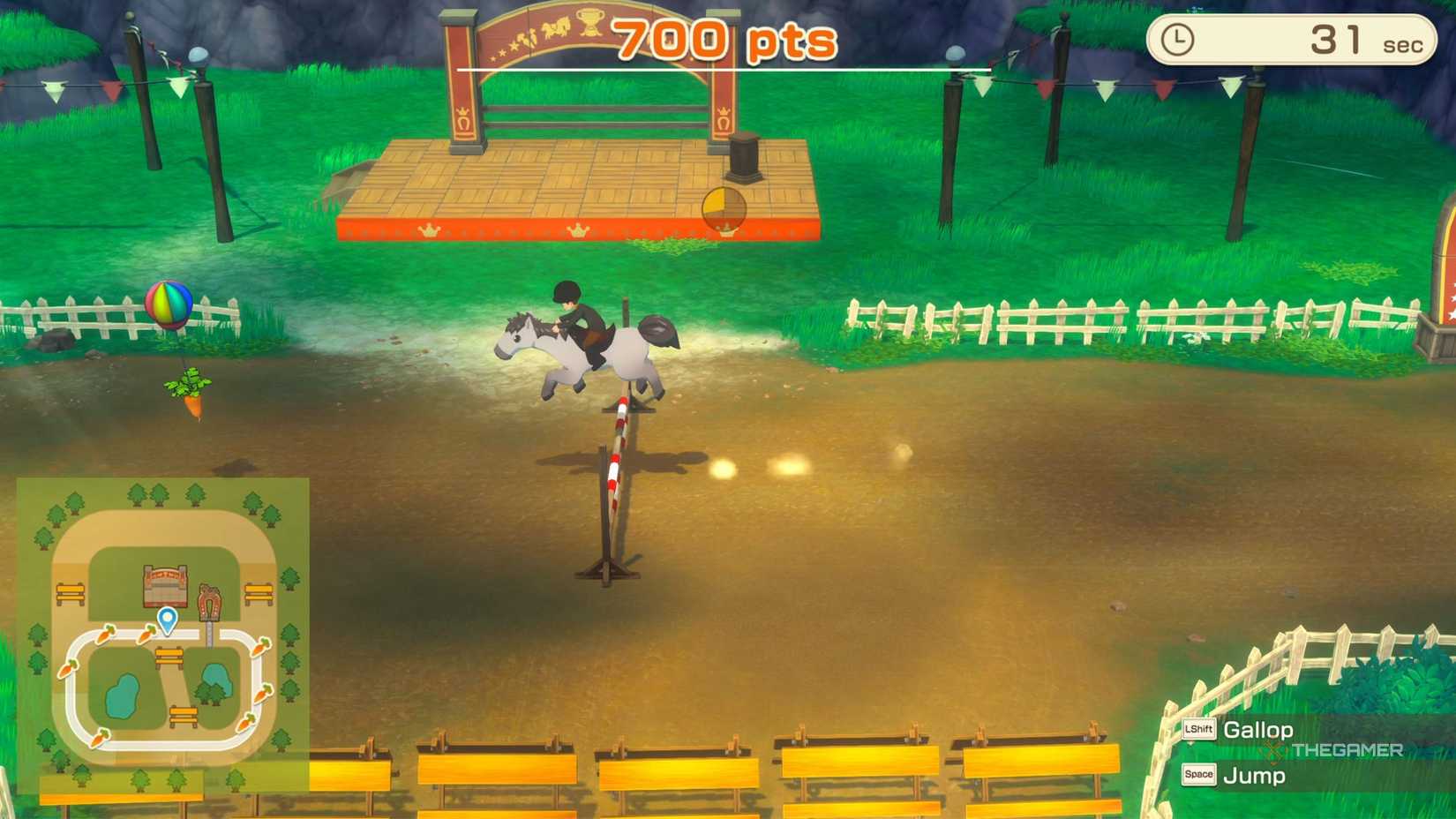 イベント自体は、本質的にあなたの馬に乗って、あなたの道にニンジンを集めながら、たくさんの障害物を飛び越えることを伴います。ニンジンを集めると、馬のスタミナを再生し、走り続けます。タイマーの終わりまでに得られるポイントは、他の競合他社と集計されており、最大限に獲得した場合、勝ちます。