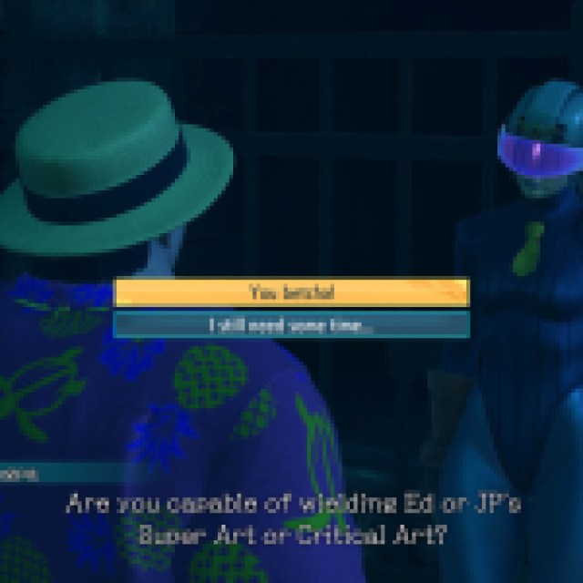 エドまたはJPのレベル1スーパーアートのいずれかを装備し、もう一度ネイシャルに行きます。セーフハウスに旅行し、時間を夜に変えてからアリーナに行きます。ドールズチャンパに相談してください、サイコパワースーパーアートで3回それらを打つように頼みます。メーターを心配しないでください。この戦いのために完全なメーターがあります。