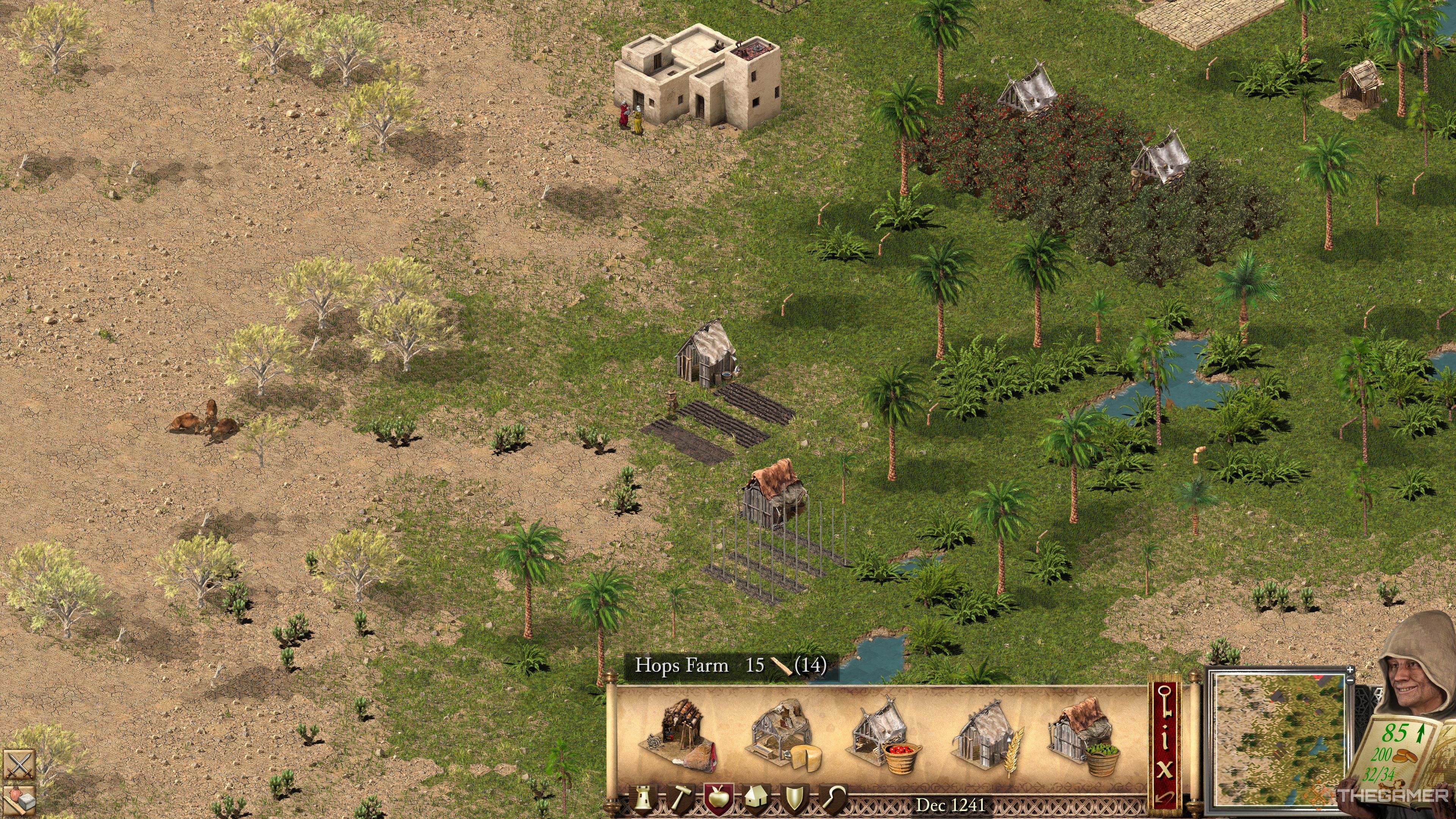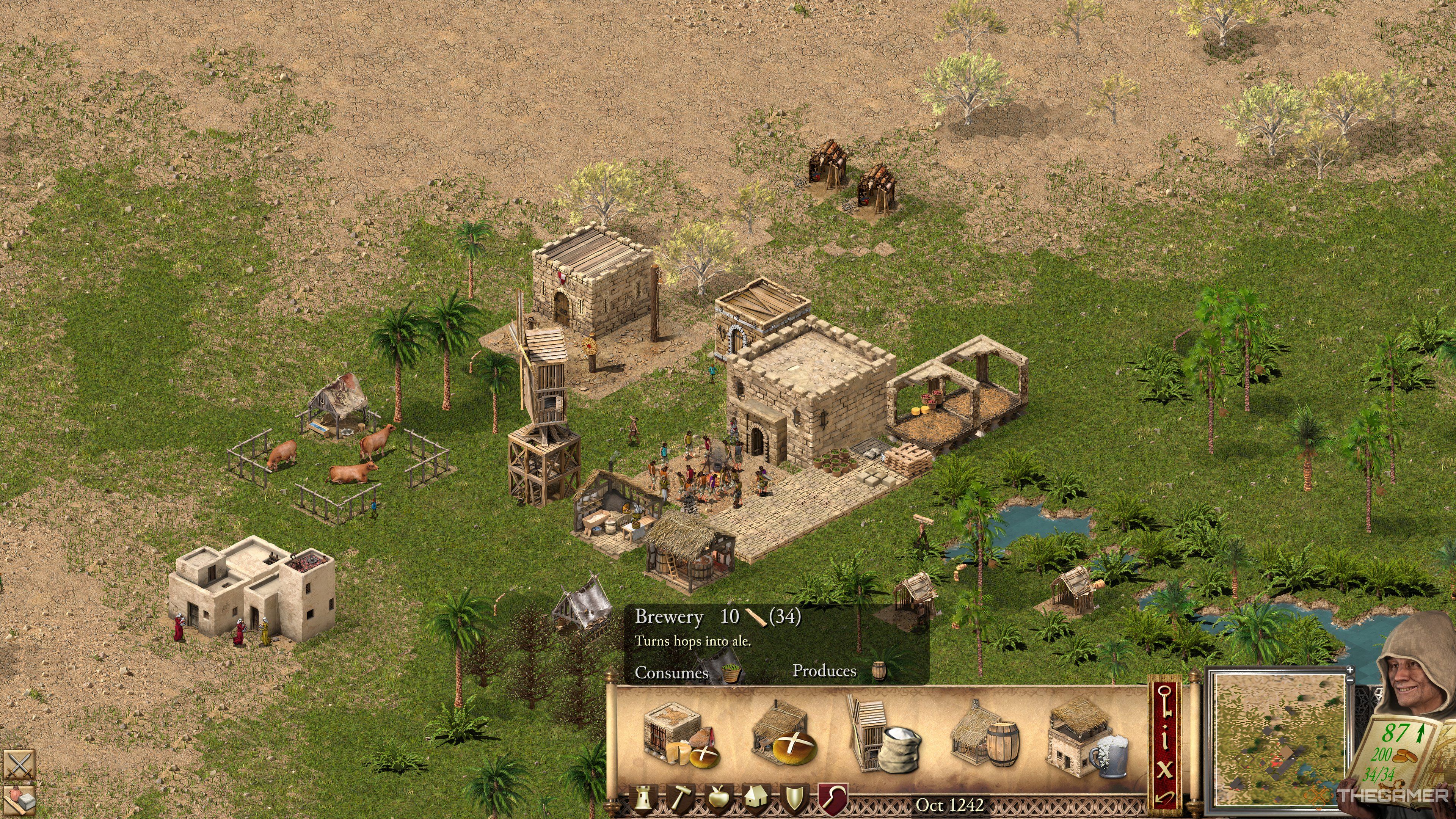 ホップファームは置くことしかできません草が茂った土地、小麦やリンゴの農場のように。それぞれ供給は醸造所に飛びます それをエールに変換します。エールはそうです宿で提供されます人気を高めるため。固体最初に比率2つのホップファーム、1つの醸造所、1つの宿です。人口が成長するにつれてスケールアップします。
