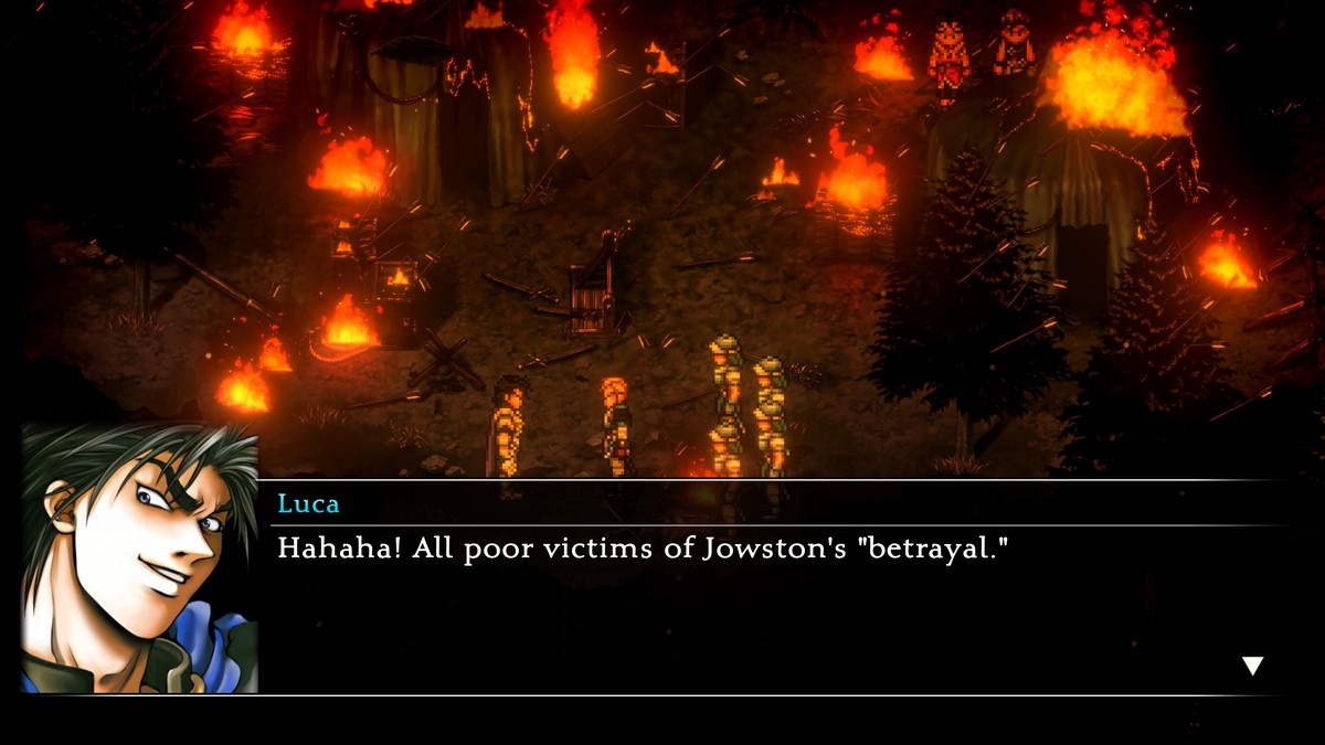 最終的に、陸軍の衝突も行われ、プレイヤーはあなたのラグタググループ以上の反乱軍以上のものを含むロックペーパーシッサー戦闘の味を与えます。大規模な戦いのアイデアは、昔は嬉しい驚きであり、特にSuikoden IIのより火の紋章のようなデザインで、それは依然として主に当てはまります。しかし、新鮮さの感覚は間違いなく時間とともに鈍くなっており、同じことがソロの決闘にも当てはまります。ありがたいことに、これらの瞬間は常に結果的な物語の進行を伴い、潜在的な疲労を軽減します。