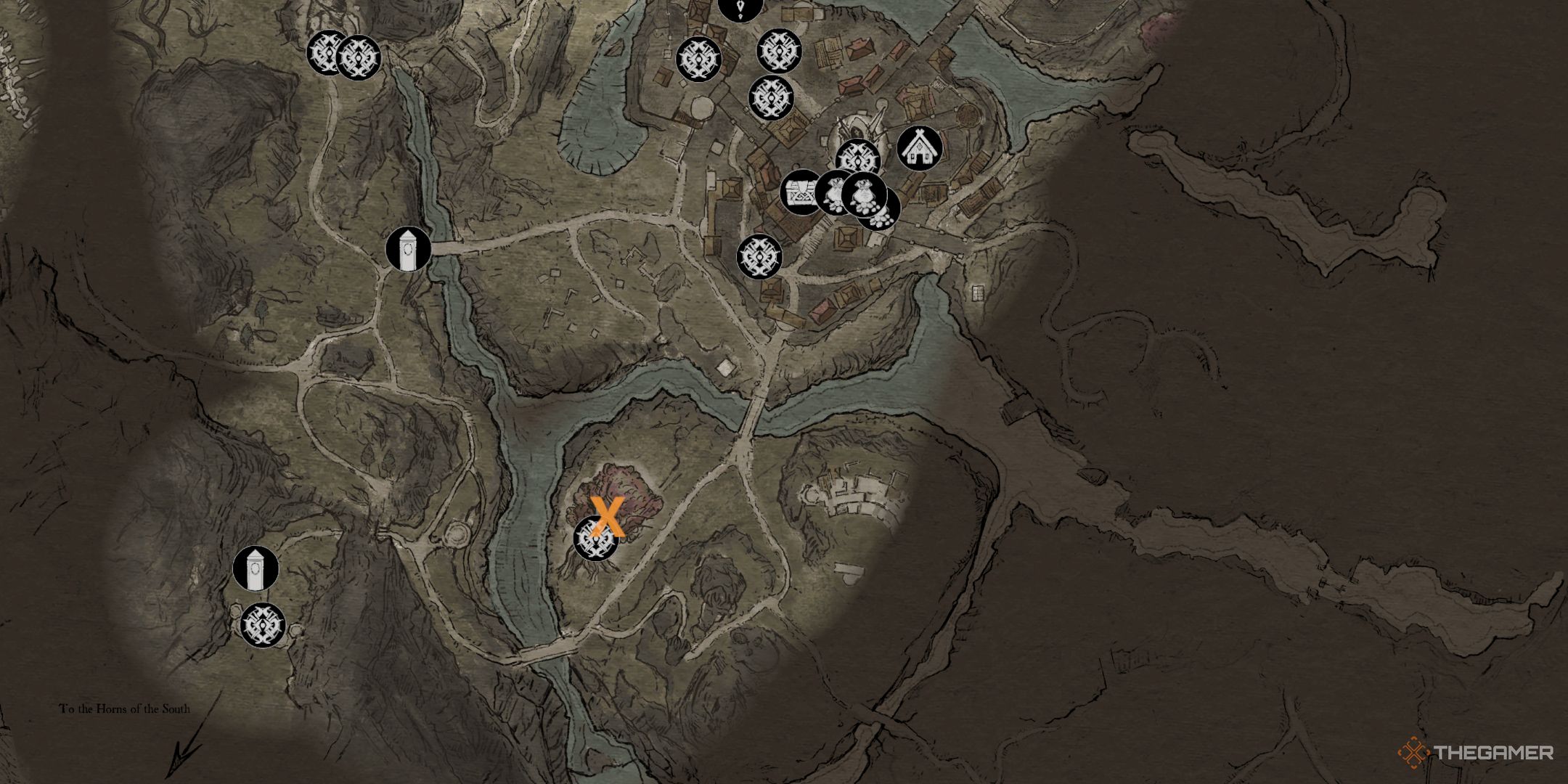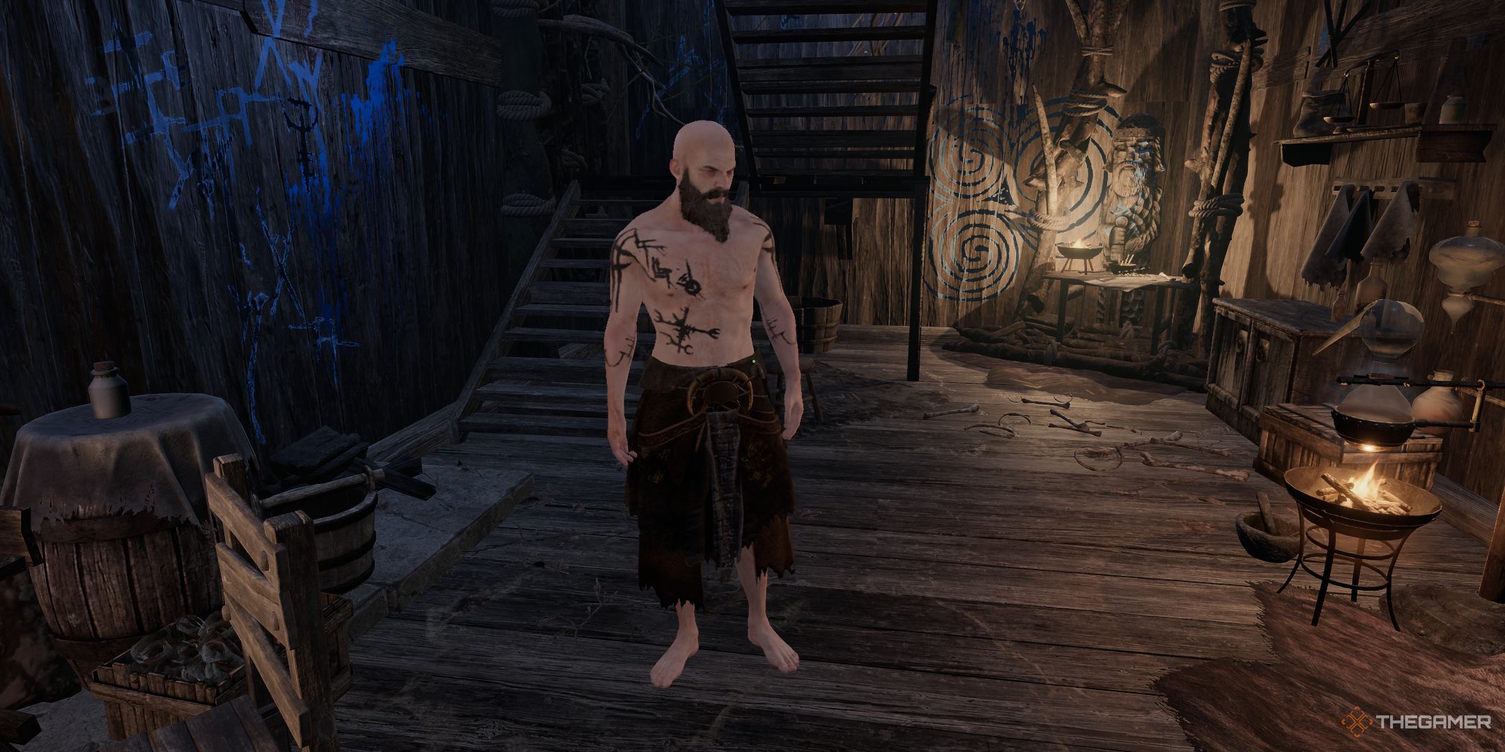 素晴らしい旅行クエストを開始するには、まず黙示録的なクエストを完了する必要があります。ありがたいことに、これは非常に簡単です。デンホルムと話す必要があります。彼はメインビレッジの北西の角にいます。から農地の高速旅行マーカー、端を南に向かい、周りの水をたどる木製の階段がある場所に。上の階段を上ってください。テントの中にデンホルムが見つかります。彼に話しかけ、マグゴットと話をすることに同意します。