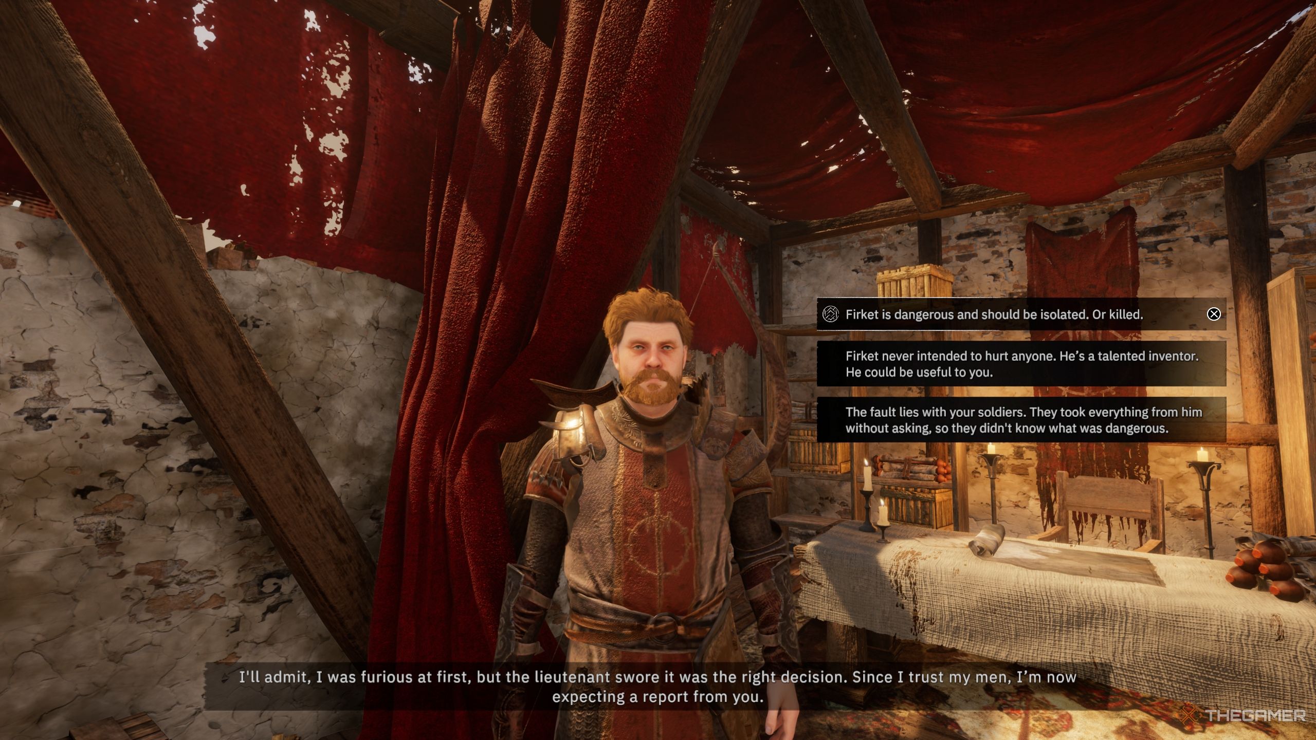 最後の選択では、選択する必要があります」欠点はあなたの兵士にあります。彼らは尋ねることなく彼からすべてを取り入れたので、彼らは何が危険であるかを知りませんでした。'これは基本的にFIRKETで羽目板であり、何が起こったのかをデンホルムに非難しています。