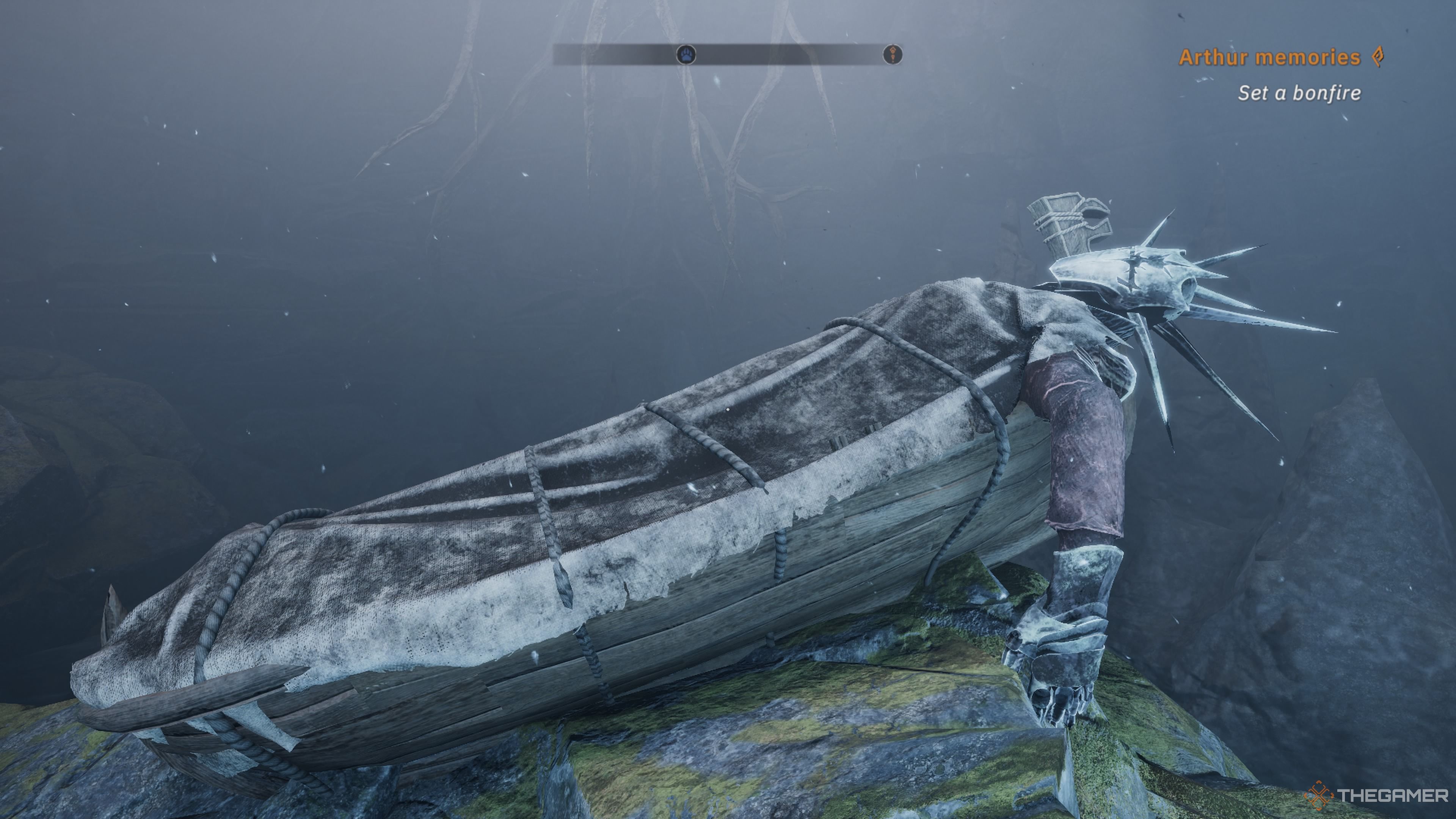 あなたは泳ぐ必要がありますに戻る海岸線の主要部分、あるようにbonき火に適した場所はありません近くにありますが、そこに着いたら、できます1つ配置しますそして、10個のエーテルのクモの巣を使用します火と速い旅行に火をつけます村に戻る。
