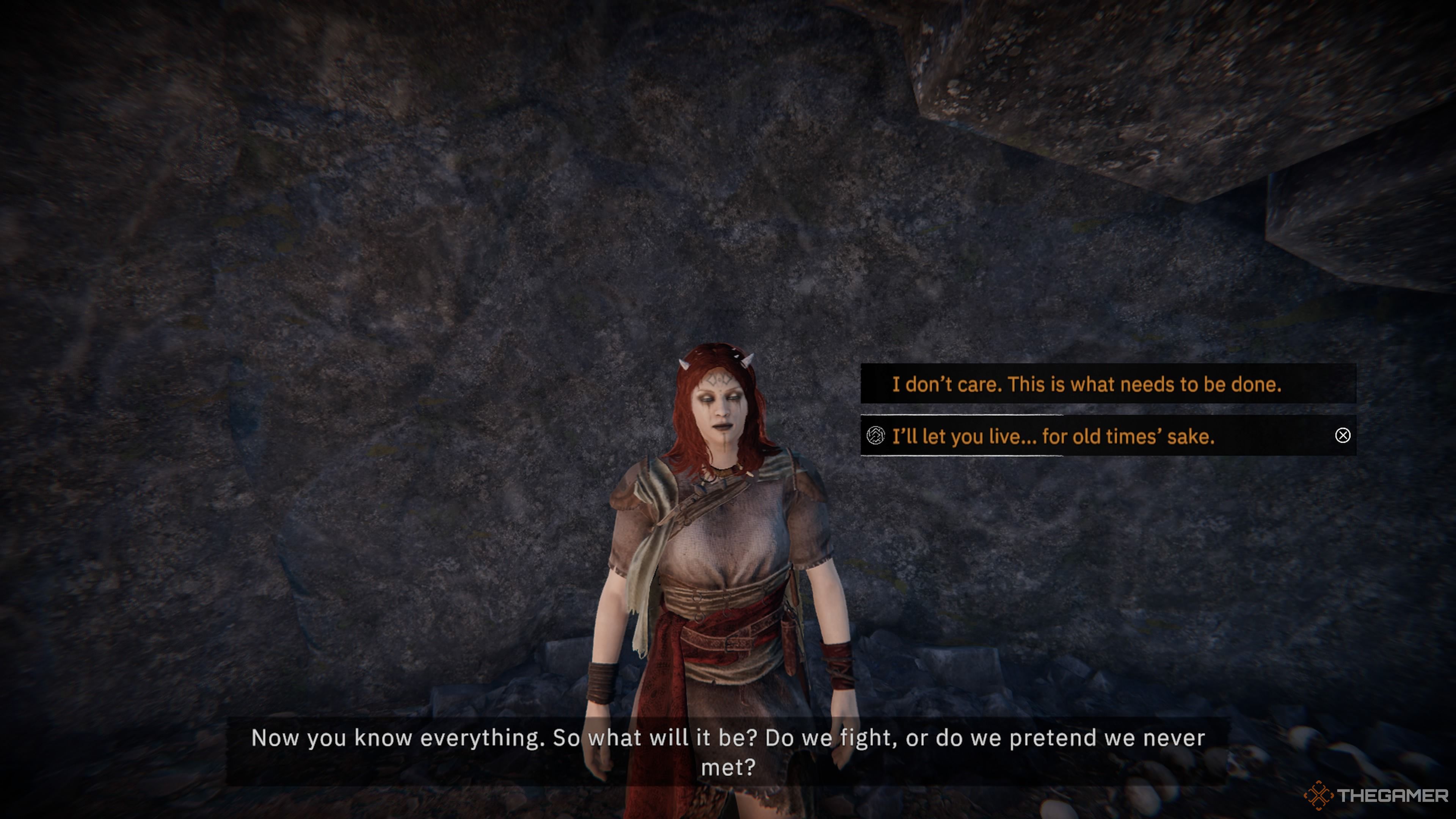 近く会話の終わりSirjaで、あなたは2つのオプションがあります:彼女を殺す彼女の頭をヴィダーに戻します彼が求めたか、あなたができるように彼女をspareしみ、ヴィダーに嘘をつくことを選択してください後でそれについて。