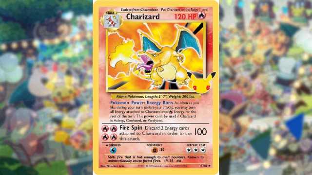 このCharizardカードは、有名なトレーディングカードを称えるCelebrationsセットの一部としてリリースされました。このモダンなカードは、オリジナルのCharizardカードで使用されている古いアートワークを備えていますが、非常に手頃な価格です。