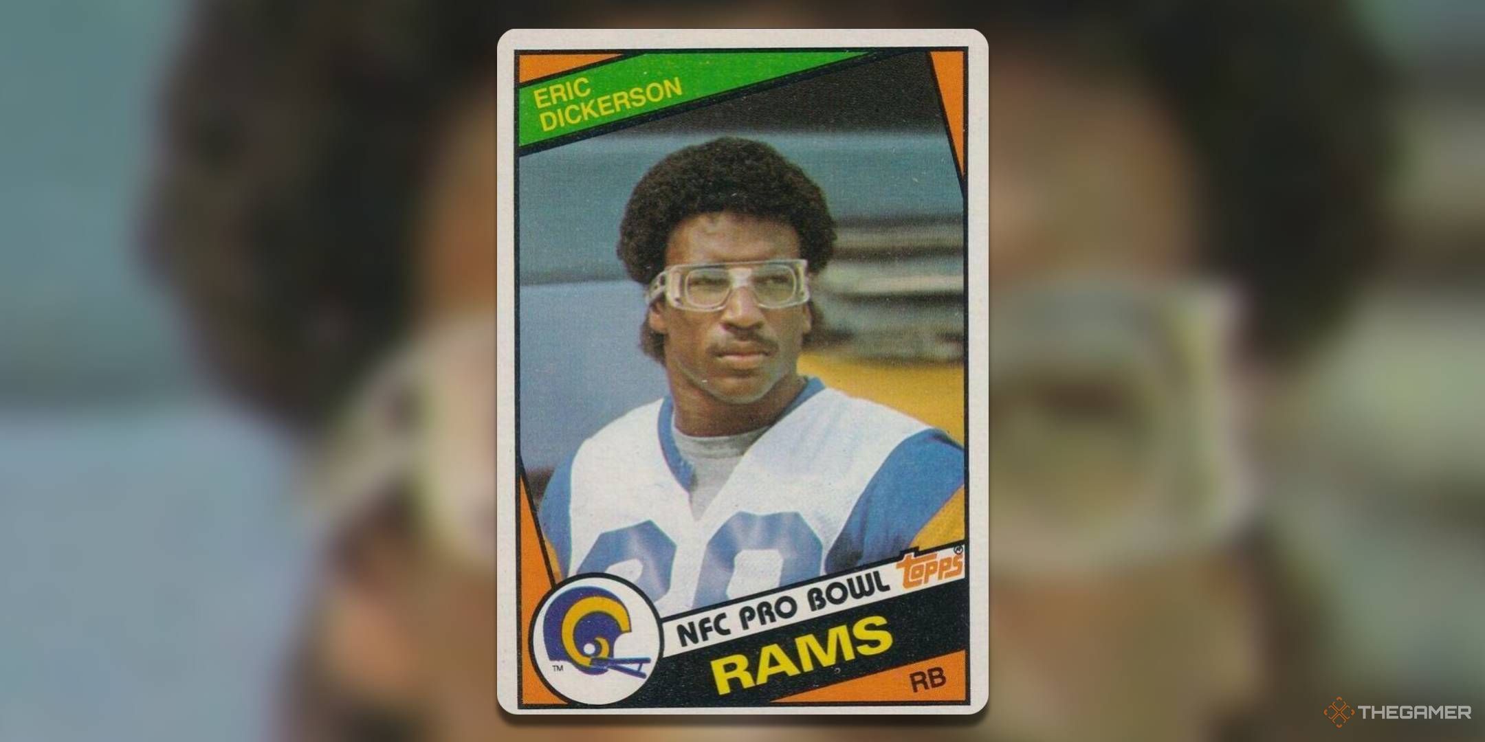 エリック・ディッカーソンは、多作のランニングバックで、1983年にセントルイス・ラムズによって2番目にドラフトされ、このカードが印刷されるまでに、彼はチームでの最初のシーズンですでに攻撃的なルーキーオブザイヤーを獲得していました。このカードが印刷されたのとまったく同じ年、ディッカーソンは続けますリーグのシングルシーズンラッシュレコードを設定します2105で、まだbeatられていません。
