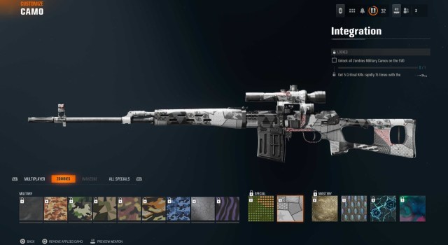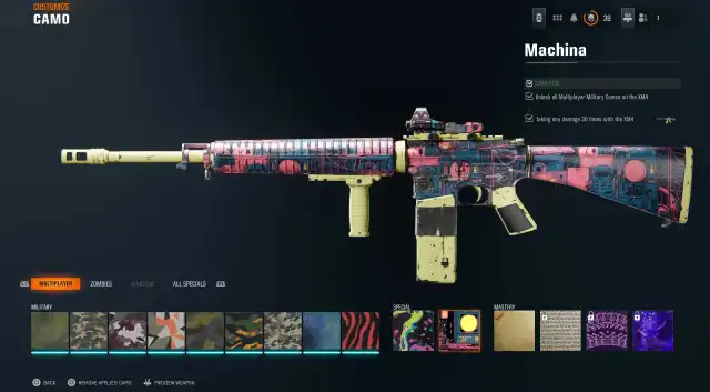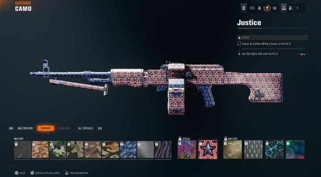 特別なカモは、同じ武器ですべての軍事的挑戦者を完了した後にのみロック解除できます。たとえば、XM4を使用してマルチプレイヤーで100のヘッドショットキルまたはゾンビで2,000の重大な殺害を受けた場合、特別なカテゴリがロックを解除し、特別な迷彩を銃に装備するために2つの追加の課題を完了する必要があります。