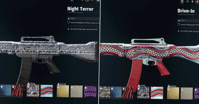 あなたが彼らのために一生懸命働かなければならないことを考えると、特別なカモが軍事カテゴリーから利用可能な標準的なカモよりもはるかに特別なカモがはるかに特徴的であることはおそらく驚くことではありません。バレル、雑誌、グリップなど、特別なカモが武器全体を覆うだけでなく、それらの多くは鮮やかな色と傑出したパターンを備えています。