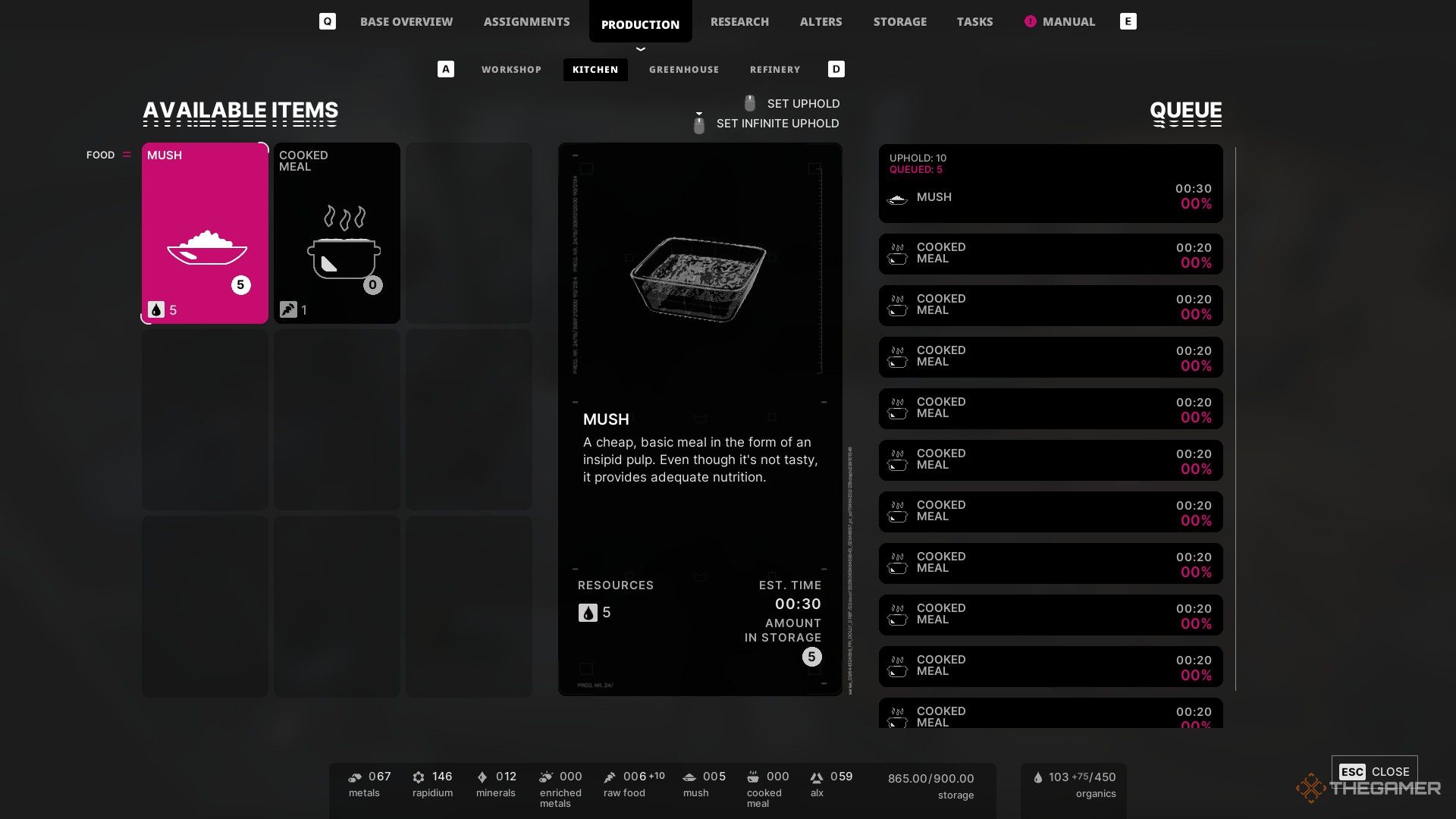 ベースの誰もが食べる必要があります。たとえそれがただの味のない栄養ペーストであっても。 Mushは、あなたの貴重なオーガニックの供給からキッチンで作られており、乗組員を給餌するために必要です。