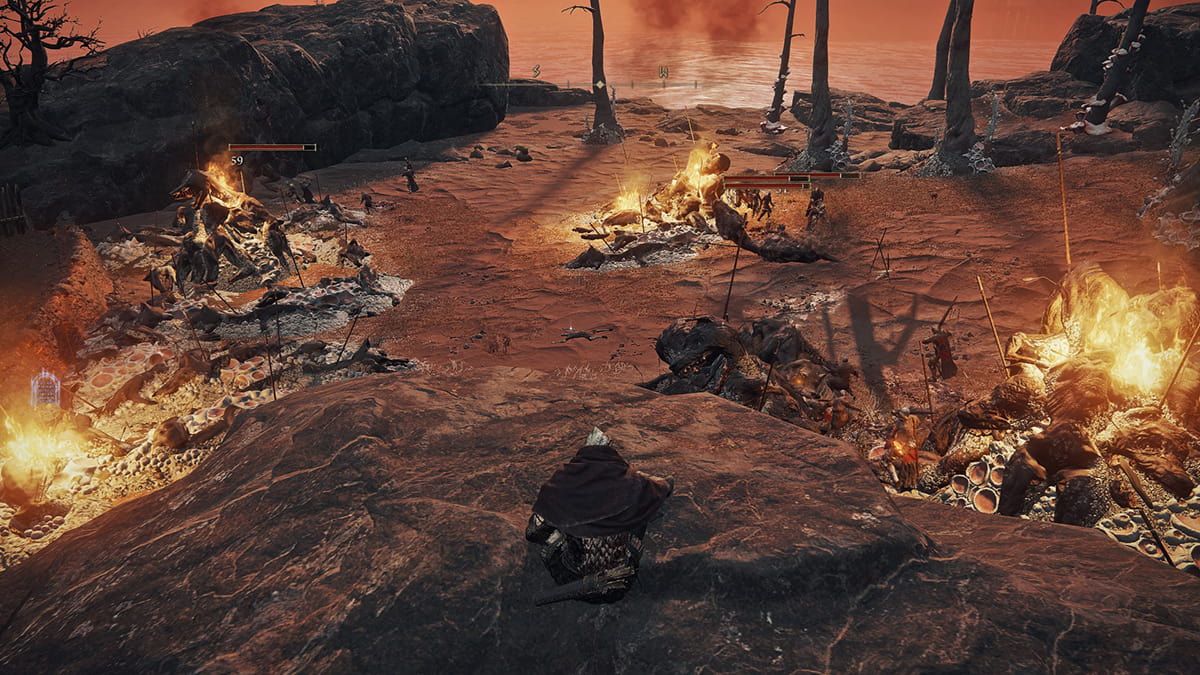 ほぼ何もしない約5分ほどの数千ルーン。あなたは恵みの通行不可能な橋の場所に到着し、近くの大きな悪魔の犬とラダーンの兵士との間の継続的な戦いに気づきます。これらの敵は自分自身と戦うことに満足しており、犬が死んだ後、残りの兵士をきれいにします。あなたは得るでしょう