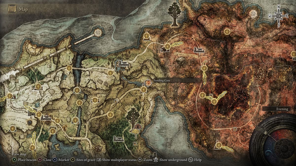 。このゲーム後半のエリアに到達するには、北東のリムグレイブのアーティストの小屋に向かい、川を渡って小さな日陰の角に移動します。