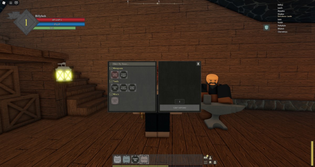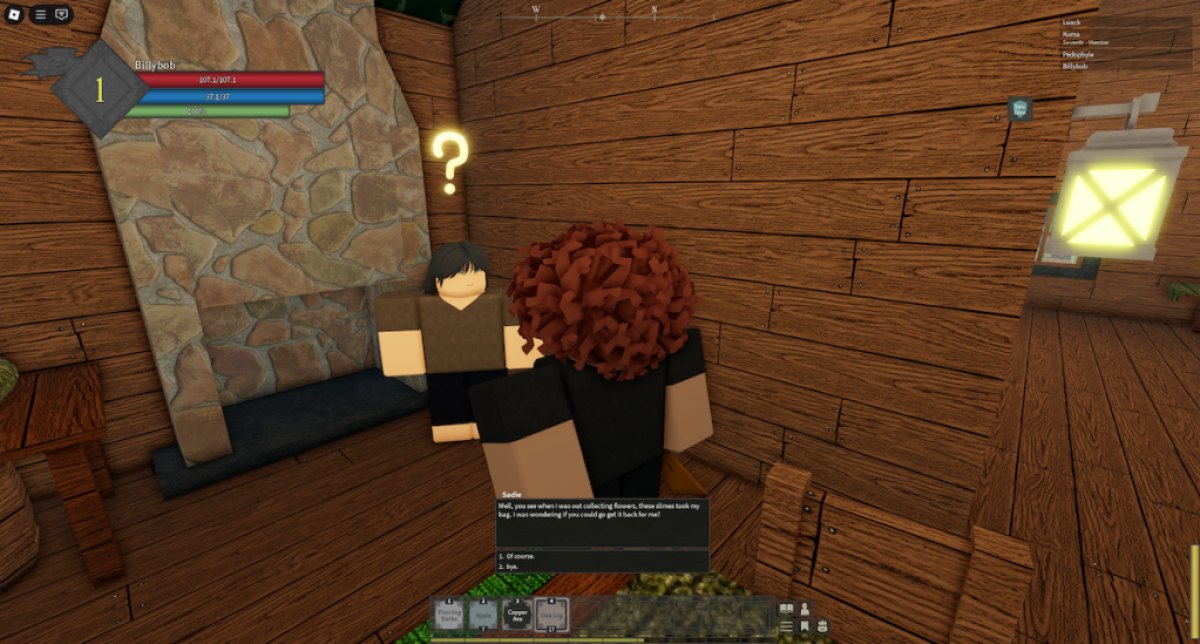 - それを行う方法:鍛冶屋はあなたの支援を要求します基本的な銅の武器を作成します。銅鉱石を集めます近くの採掘スポットから、製錬所を使用します鍛冶屋の横に銅のインゴットを作成します、 その後武器を作成します入り口近くのクラフトベンチで。このクエストでは、クラフトシステムを紹介し、新しい武器で報酬を与えます。
