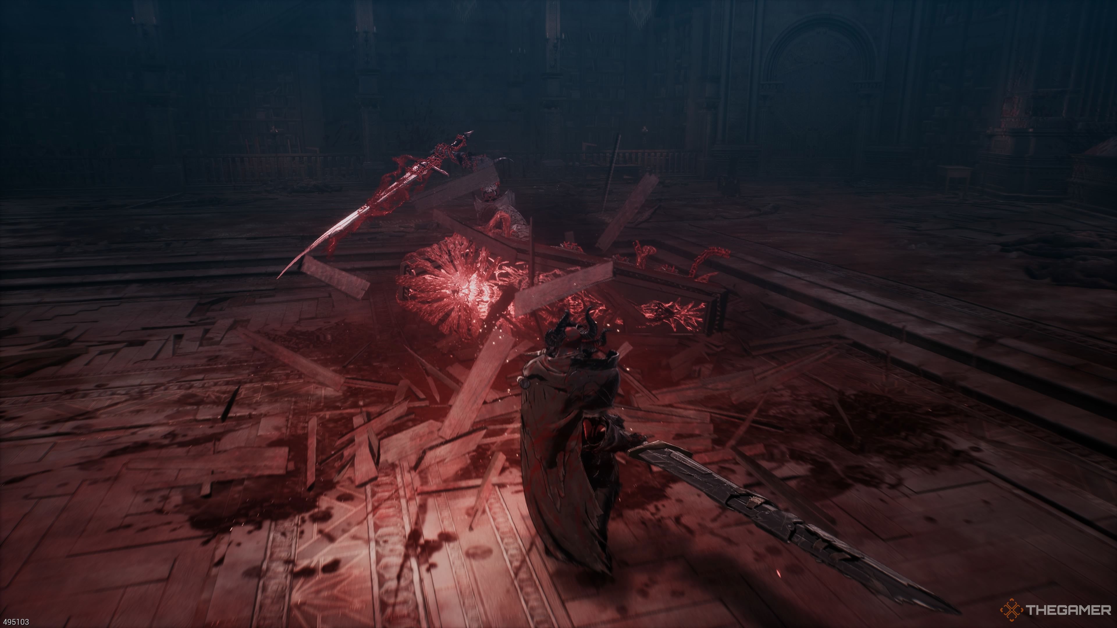 スカルペルが彼のffinの上に飛び乗ってその上に乗って歩き始めたとき、彼が止まるたびに、ffinの周りで大量の血液の爆発が起こります。この動き中に彼を避けるなら、彼はcoに入って癒します。だから、代わりに、ffinを攻撃しますそして、この攻撃を混乱させます。グレートソードの内なる怒りのように、マルチヒット攻撃は、この動きを1回爆発させる前にこの動きを終わらせるのにかなり良い仕事です。