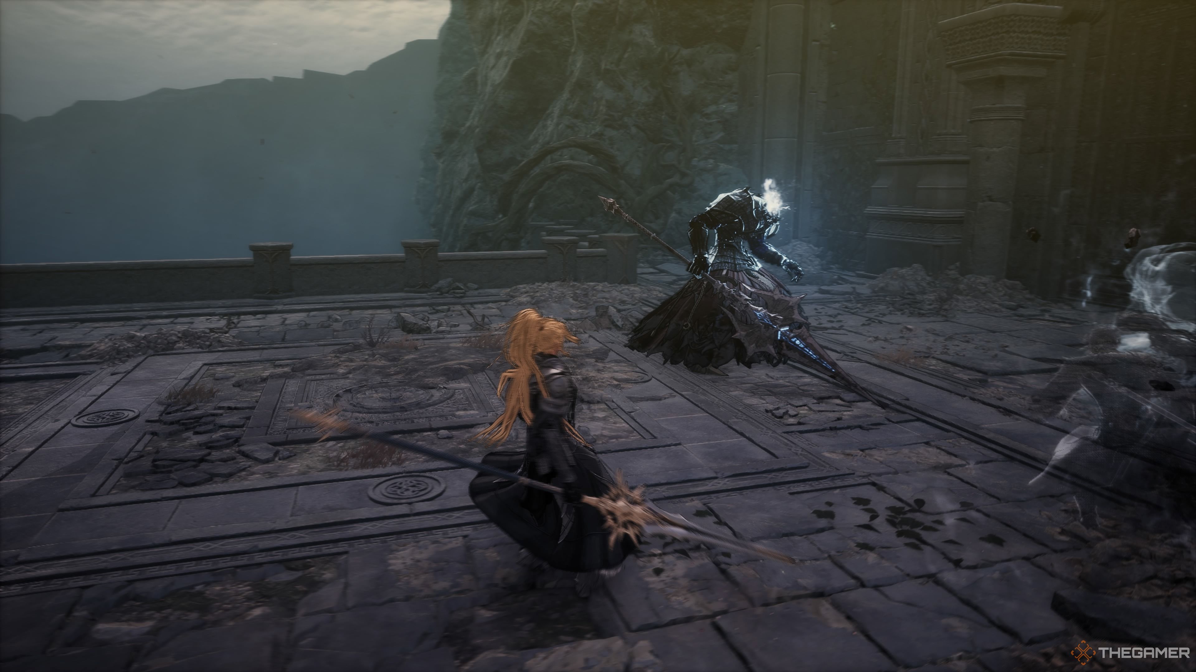 次のエリアには、2つのシャマンがあります。彼らの近くで、地面が与えられ、あなたはエリートの有名な剣士の影を持つアリーナにいます。あなたの一歩を踏み出すと、穴から落ちる前にシャマンを取り出すことができます。飛び降りると、有名な剣士の影の背中に直面するので、早めにヒットを得ることができます。