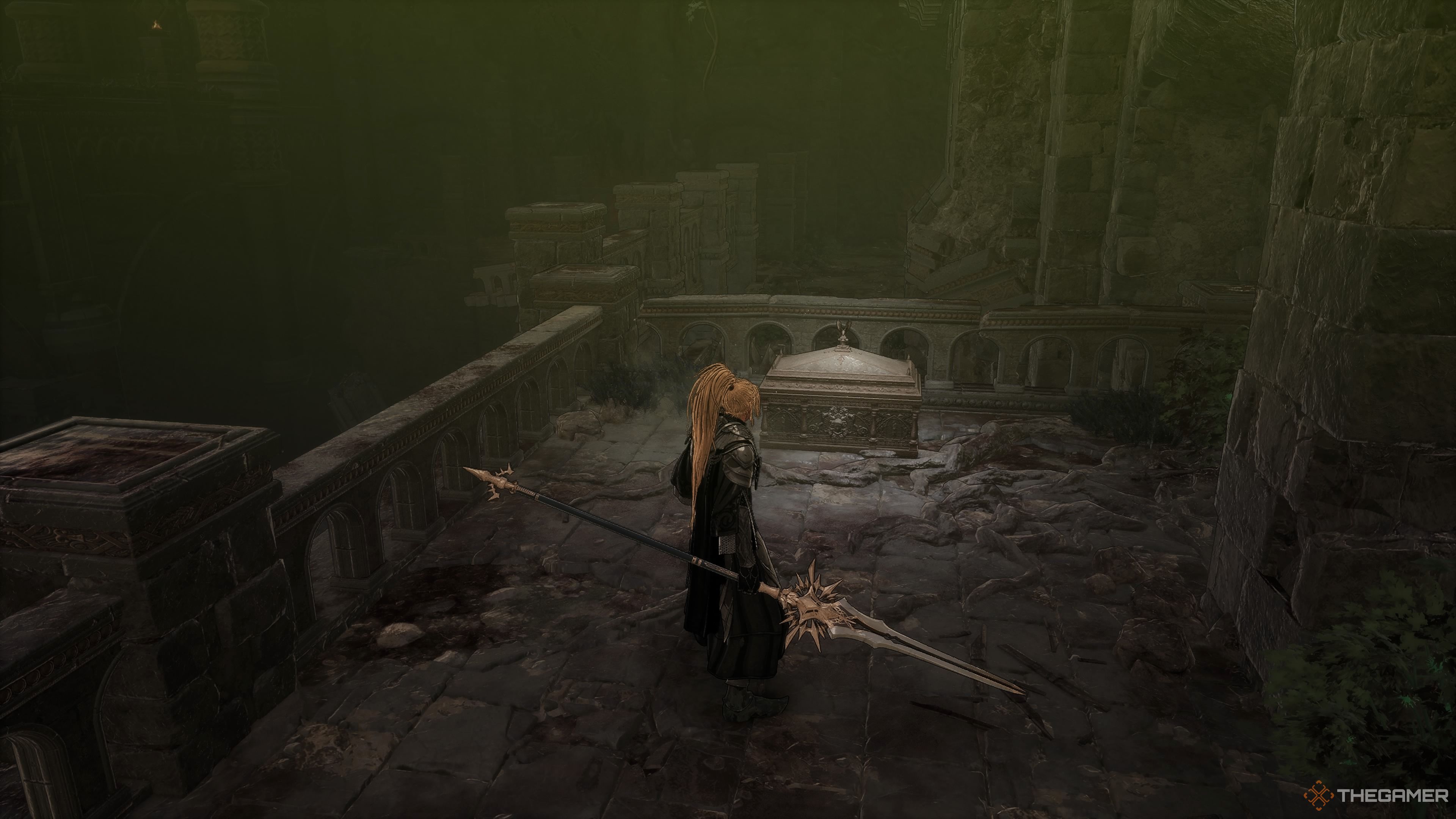 そういえば、もし彼が魔法を使い始めるのに十分な距離が得られるなら、彼は多くの魔法の輪を地面に置きます。あなたはこれらを踏むのを避けたいと思うでしょう。彼にはかなり効果的な動きがあります彼は彼の盾を描いて急いで前進します。これは間違いなくあなたを驚かせることができます。彼があなたの近くにいない場合は、それを探して、彼をかわしてください。ハイクレリックを倒したら、最終的なゲートを通ってこのステージの最終ボスに立ち向かいます。エラメインの残骸。