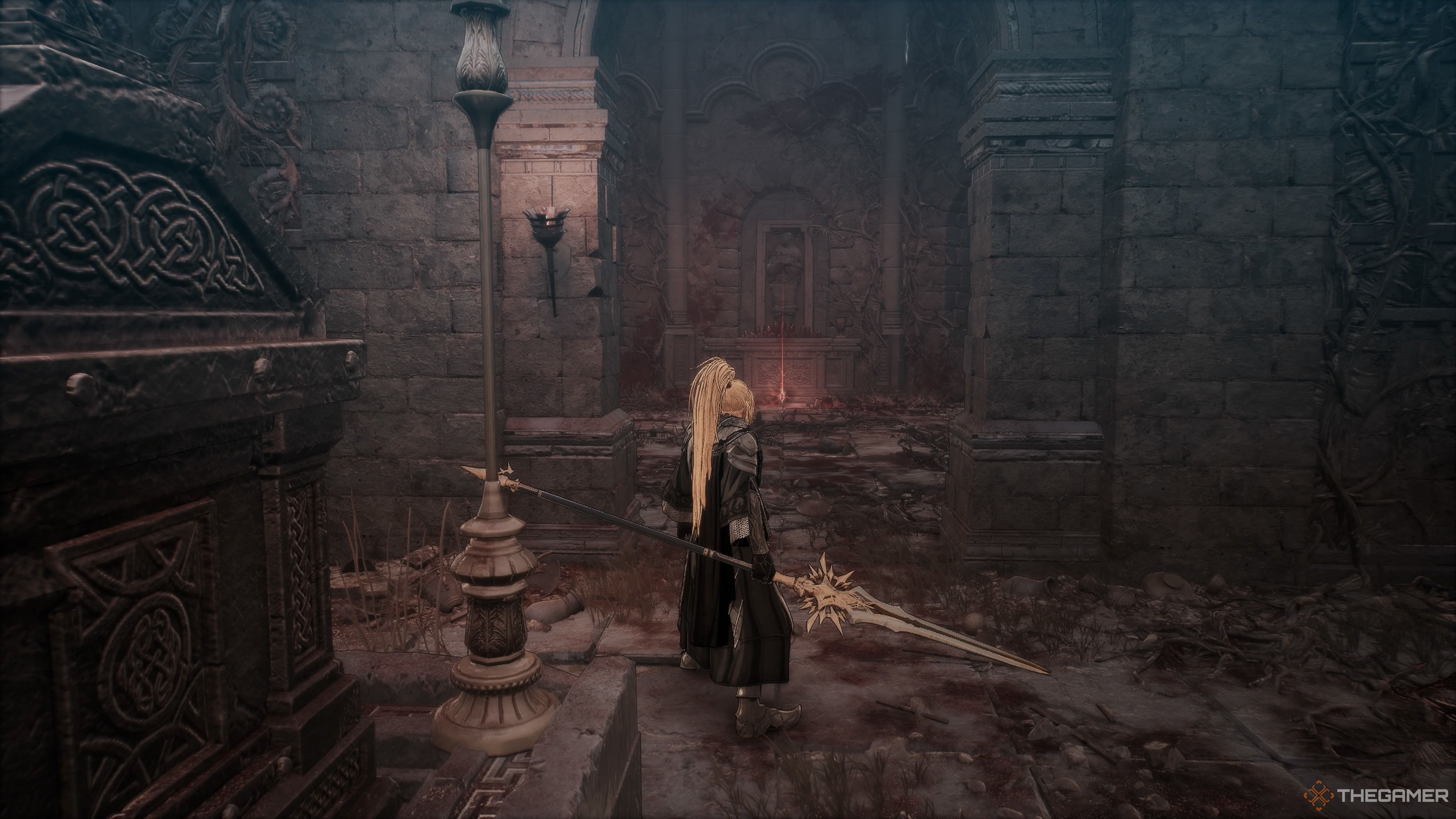 ゴーレムと戦ったゲートに戻り、レバーを引っ張り、Velied Path Blade Nexus。さて、エリートが腐敗した高聖職者と戦うために前進します。この時点でこれらの人の多くと戦ったことはありませんが、あなたが彼らの近くに固執し、彼の巨大なハンマー攻撃を守ることに焦点を合わせるなら、あなたは大丈夫です。彼はかなりの量のダメージを与えます、そして彼の魔法は難しいかもしれませんが、近くであることはそれの多くを無効にします。