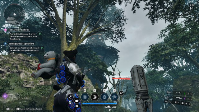 ディスクエレベーターを使用して、安全に大きなツリーに登ることができます。グラップルフックを使用してください屋根に着くまでプラットフォームを登るこの場所で、ジャーナルがあります。