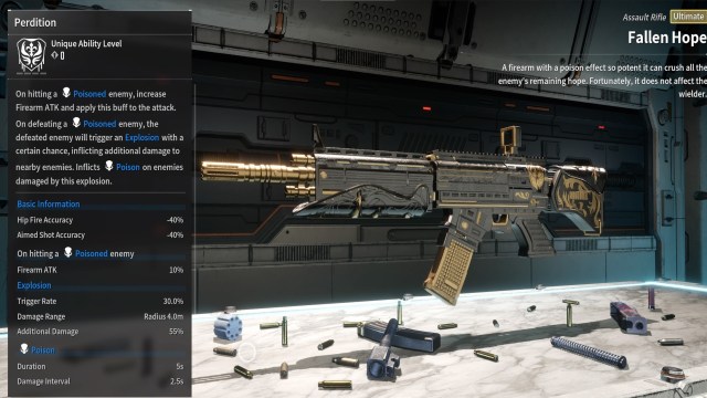 - 有毒導体:射撃した敵を攻撃するときの銃器ATK%ブースト。