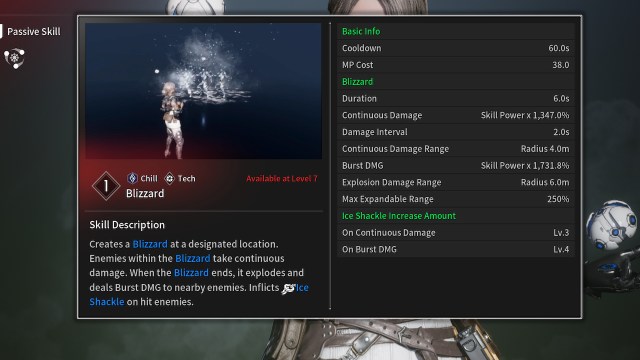 - ブリザード選択した場所でブリザードを生成することができます。敵は吹雪の中にいる限りダメージを与え、スキルが切れると吹雪が爆発します。あらゆる段階でヒットした敵は、氷の球体に与えられます。