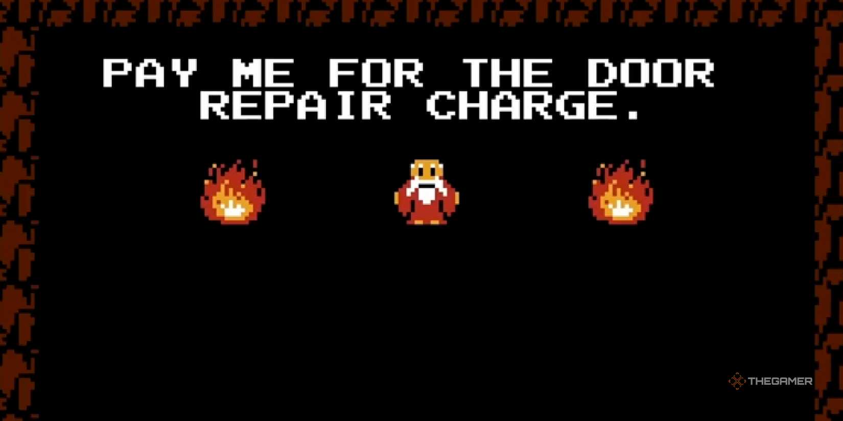 それをすべて開始したオリジナルのタイトルは、ビデオゲームほど熟成しすぎていないかもしれませんが、忘れられない象徴的な引用とNPCがまだあります。特に私たちが崇拝する相互作用の1つは、家の洞窟のドアを爆撃し、ドアの修理の支払いを強制するためにリンクで叫ぶ老人とのことです。