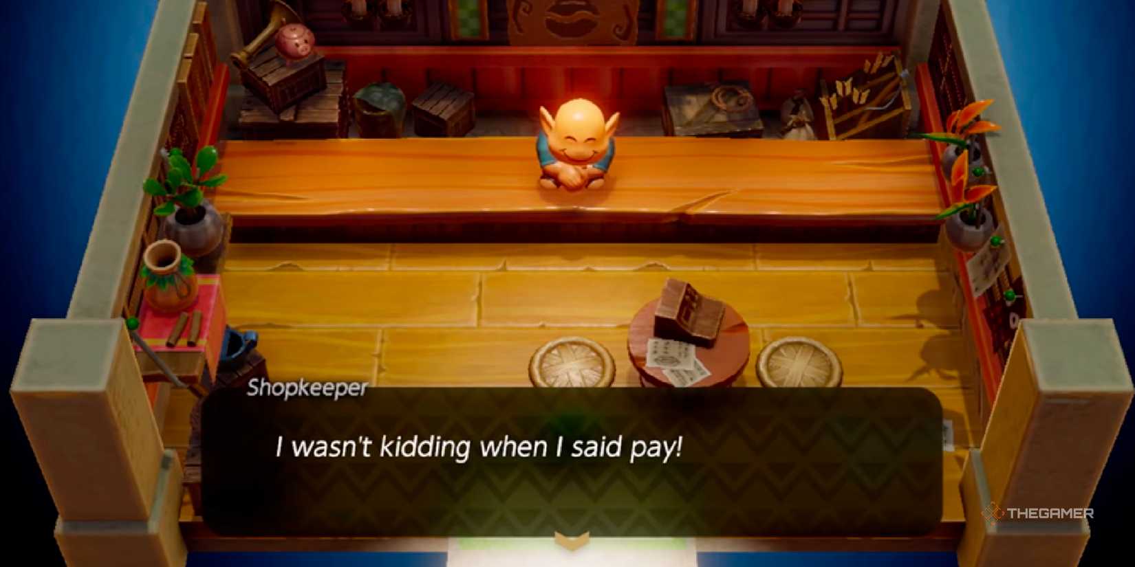 Link's Awakeningはシリーズのユニークなタイトルであり、名誉あるプリンセス自身も含まれていませんが、最も魅力的なNPCのいくつかが含まれています。すべてのゼルダゲームにはルピーを使うことができるショップがありますが、このタイトルでは、たまたま貧しい場合は店主から盗むことができます。彼はあなたを認識し、あなたを殺すことによってあなたの伝説を早期に終わらせるので、あなたは店に再び入りたくないかもしれません…