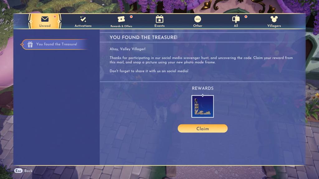 - ディズニードリームライトバレーの偉大なソーシャルトレジャーハントコード
