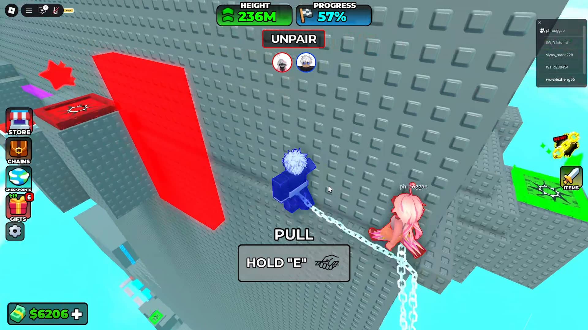 初め、参加するチェーンズ2プレーヤーobby Robloxで。また、入力することもできますハントメガエディションロビー。それから、別のプレイヤーとペアになりますそれらに近づいて保持することによってe(これをデュオで再生する必要があります。結局のところ、それは2プレイヤーのOBBYです)。