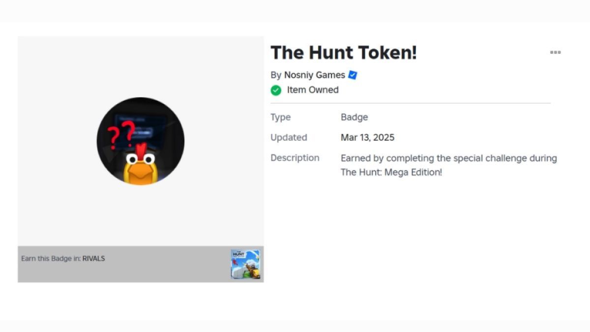 上記の課題を完了したら、ロビーのShady Chicken NPCに戻り、それに相談してください。 「token」を選択します「ハントトークン」のロックを解除します!」 Robloxのバッジ。それではできますハントに戻る:メガイベントと進捗の増加を確認してくださいトラッカー上。