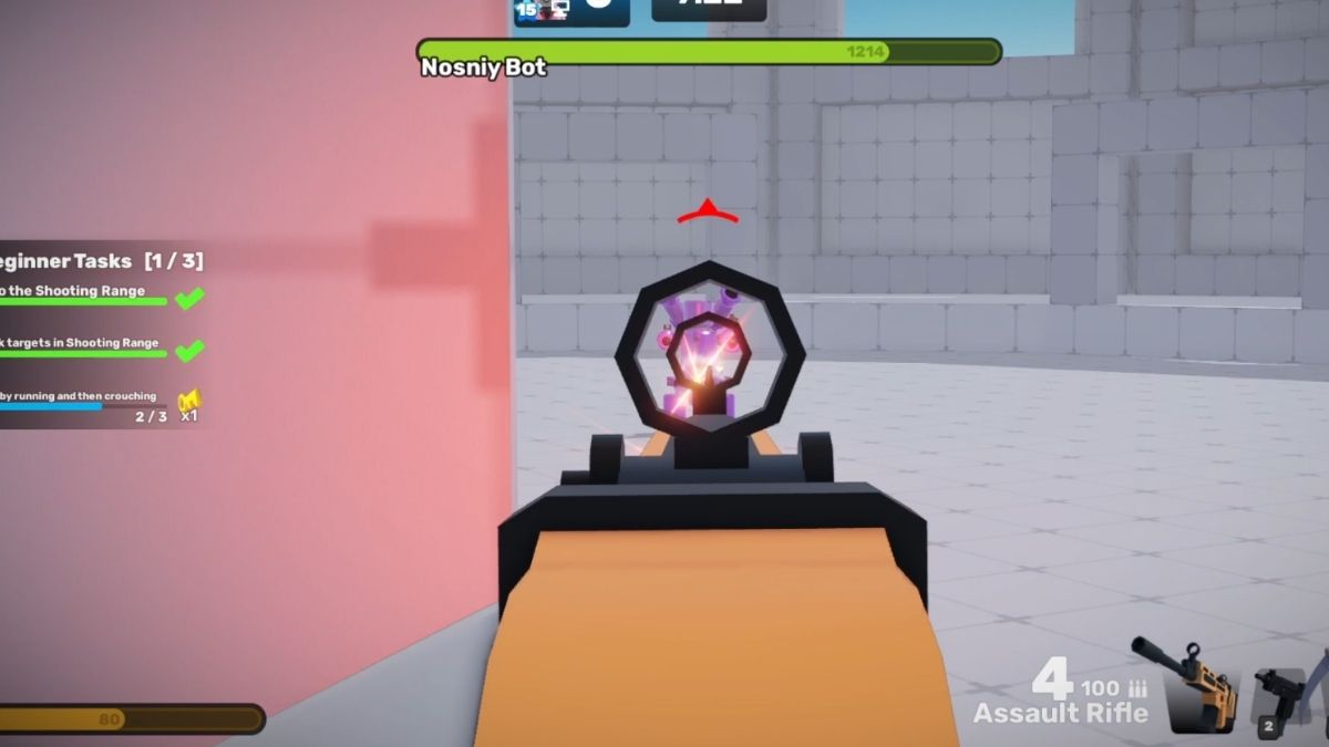 すべてのトークンを持っているときは、ライバルに戻ることができますが、まだ怪しげな鶏と話すことはできません。代わりに、に向かいます射撃場特別なターゲットで撮影する必要がある場所。通常のクロスシェイプの代わりに、これらはx。参照については、以下の画像を確認できます。必ず選択してくださいエネルギーライフル無限の弾薬を使用すると、ある時点でフラストレーションでどこでも撮影を開始する可能性があるため(自分でやったかもしれません)。
