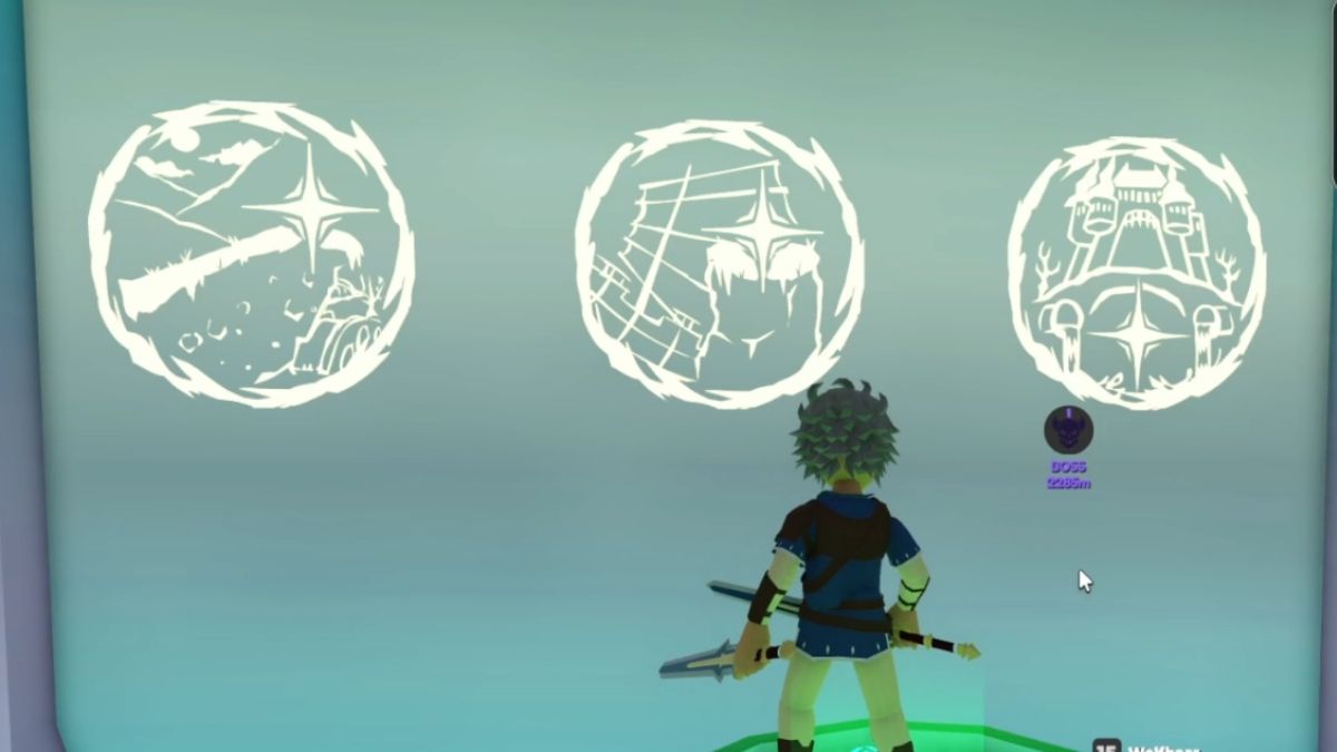 あなたの最初のタスクは見つけることです3つの宝石世界ゼロ。これを行うには、に足を踏み入れます左のボタンそして、あなたは見るでしょう3つの画像:山、ボート、城。これらはです3つの場所訪問する必要があること。あなたはすでに山の下にあるので、あなたがしなければならないのは外に戻って登ることだけです。