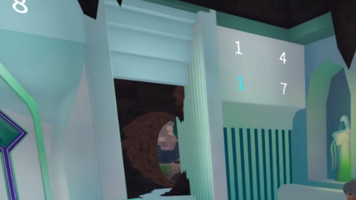 ボタンを踏むと、表示されます壁全体に数字。白いものは関係ありません、あなたはただ探しています色のもの。たとえば、壁には青4と青い3があります。あなたそれらを組み合わせます7に、そしてそれがあなたの青い数字です。 3色すべてでこれを行います。数字を見逃さないように部屋を見回してください。