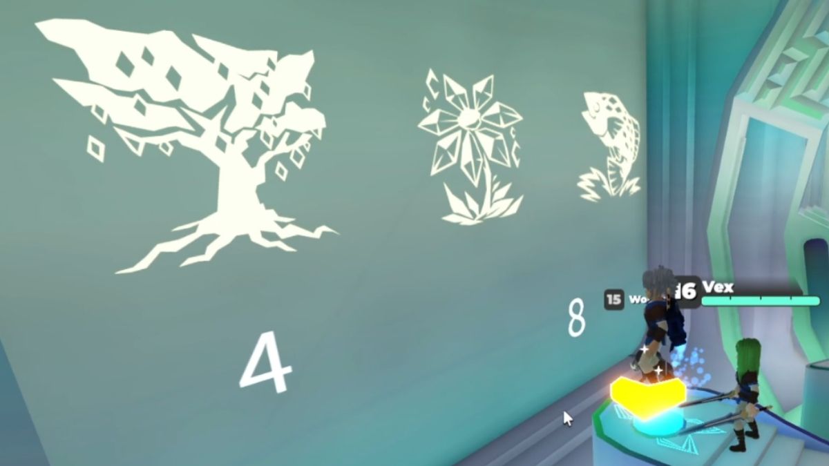 結晶画像順序によっても整理されています。魚が最初にいる場合、青いクリスタルは最初のスロットに入り、同じことが他のスロットにもなります。あなたがそれがあるべき場所にすべてを置いたら、コードを送信します中央のボタンで。それが機能する場合、ゲートはポータルを作成します。もう一度ボタンを押しますメガトークンのためにボスの戦いにテレポートされること。