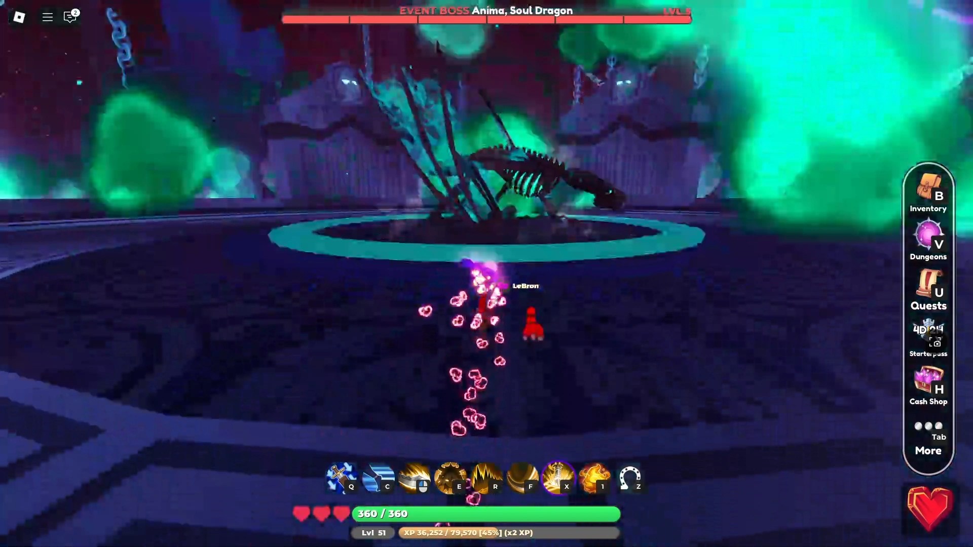 主要道路の端にある斜面を飛び降りることで、ソウルドラゴンのアニマのボスアリーナに入ります。世界のハントイベントのボス//ゼロには、いくつかの近接および範囲の動きがあります。最良の戦略はそうです近くにとどまる、アニマの下の緑の攻撃サークルに注意してください、そして彼を絶えず丸で囲んでください。これを行うことで、その能力のほとんどをかわします。
