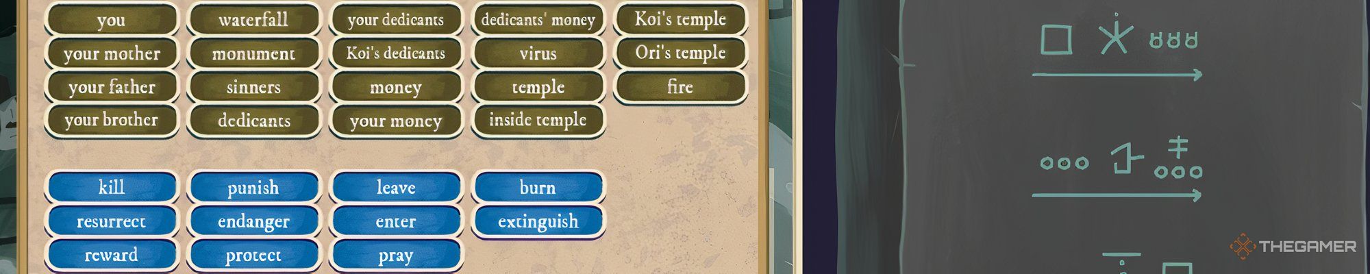 解読言語はここでのゲームの名前です。献身者が使用した絵文字を解明し、福音の意味、記念碑の戒め、特定の人が彼の献身者に滝が宣言されたことを伝えることはあなたの仕事です。