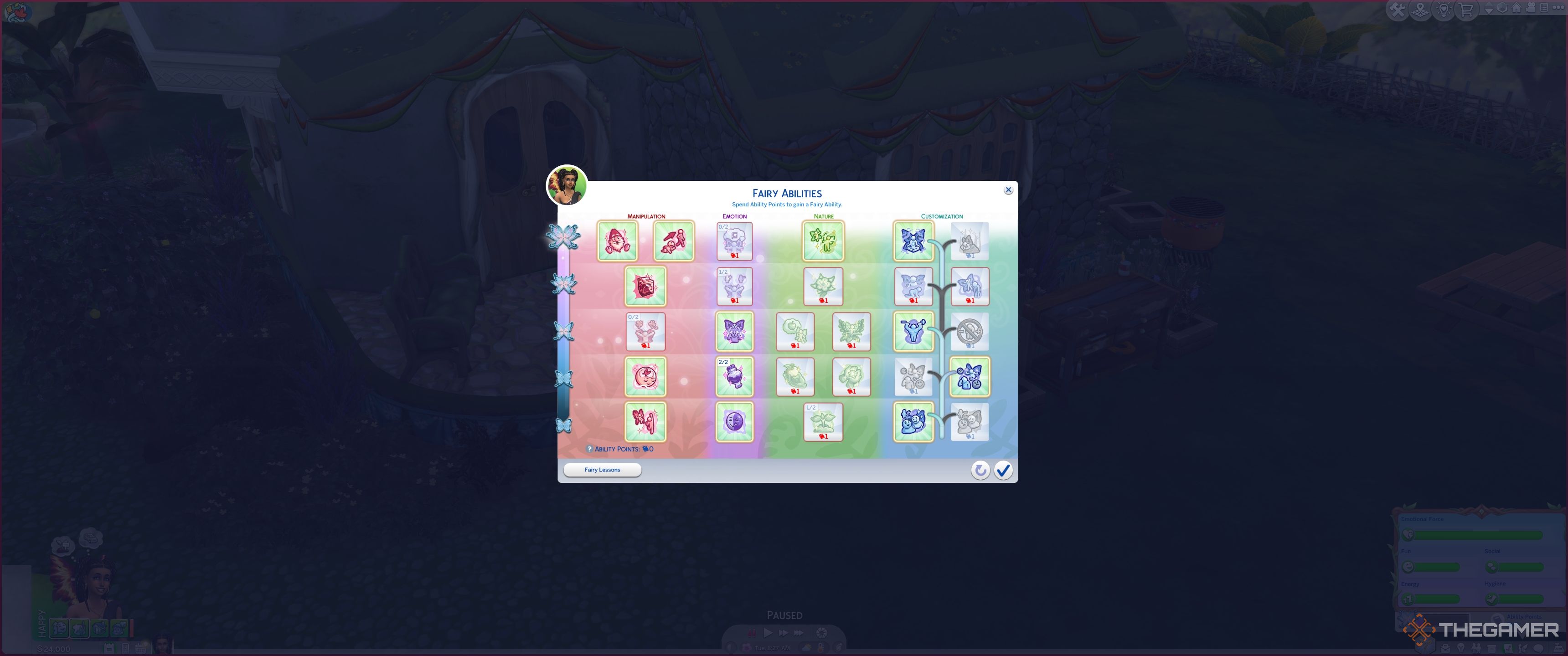 各ツリーの新しい能力はそうですフェアリーシムズがレベルアップするにつれてロック解除されます。5つのおとぎ話あなたは到達することができます:かすかに、光沢があり、きらめき、華麗で、輝きます。