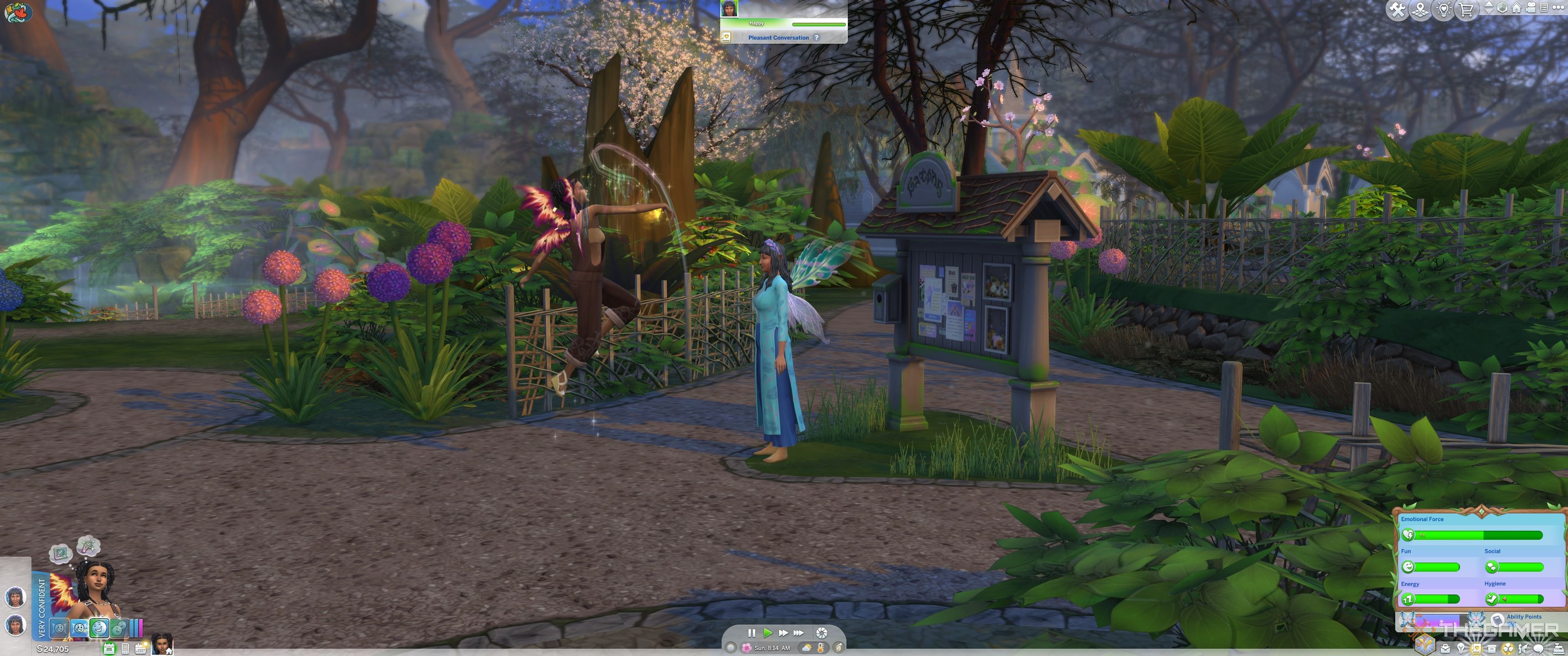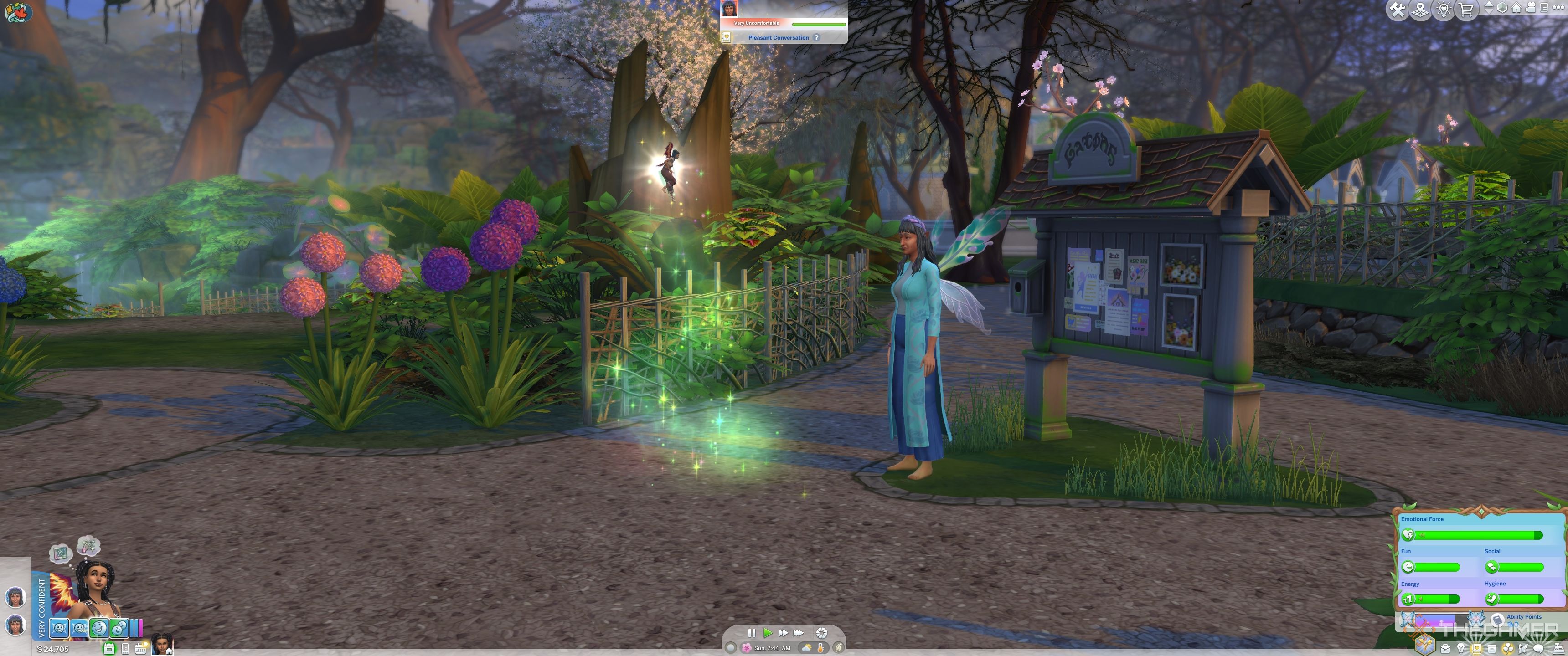 シムズ4:自然に魅了されました最後に、シムが愛されている妖精の生活を受け入れることができます。この新しいオカルトフォーム、フェアリーは、シムが翼を発芽させ、いくつかの新しい機会を受け入れることができるのを見ています。ステータスは、吸血鬼やスペルキャスターと同様の方法で機能し、能力が使用され、シムがポイントを生成してオカルトパワーをカスタマイズできます。