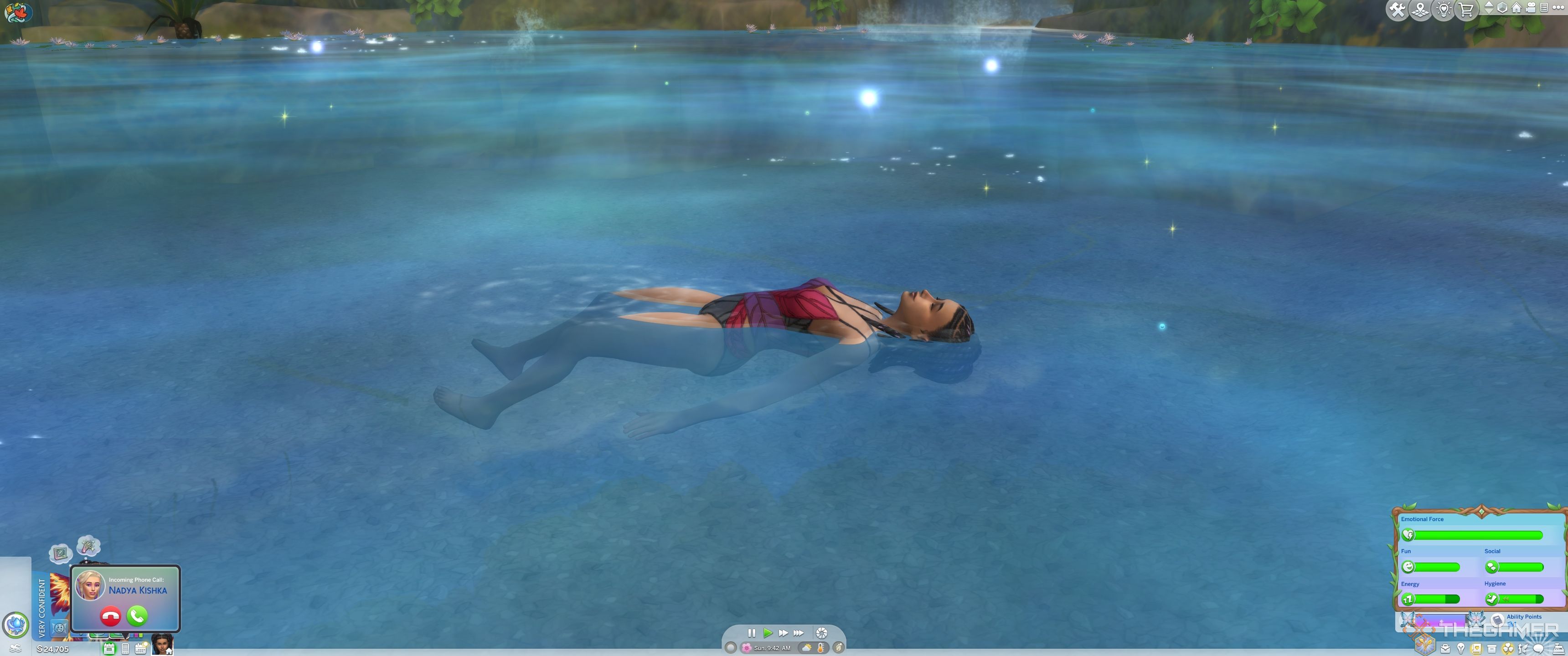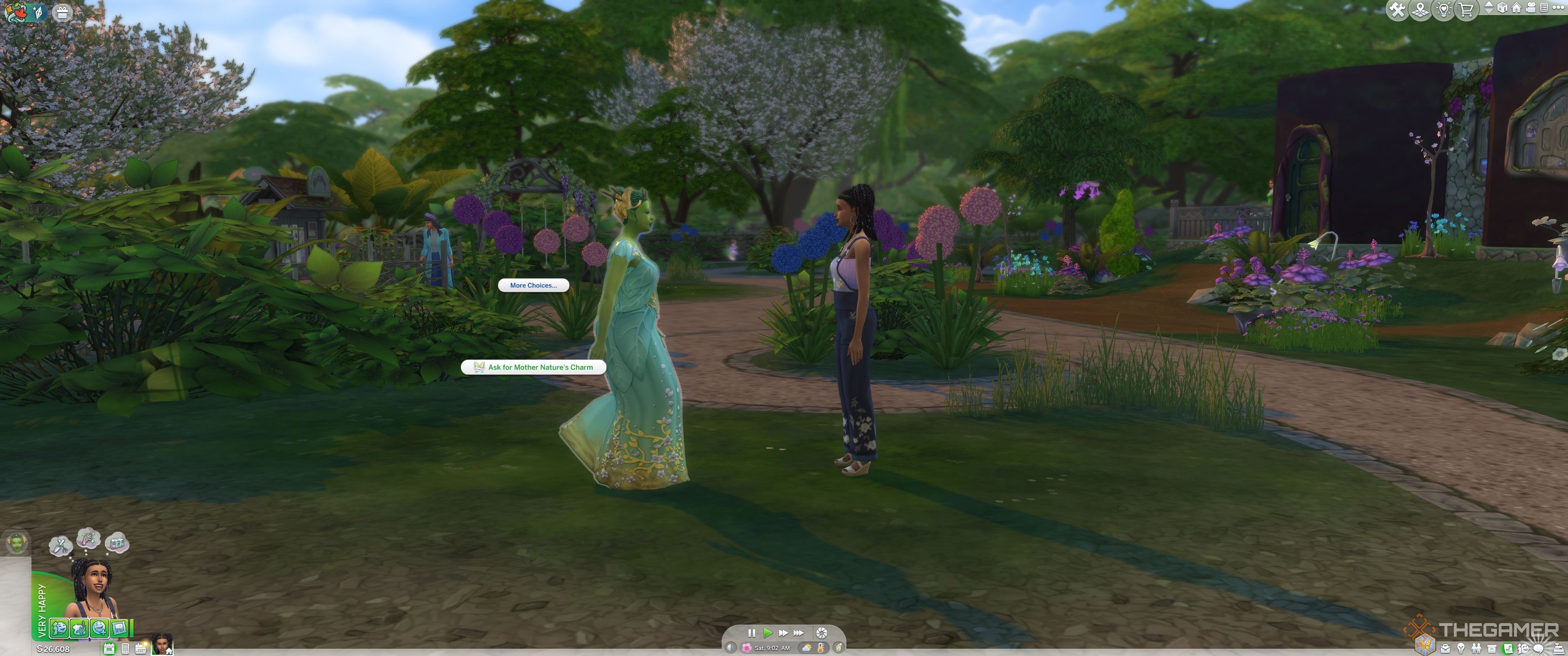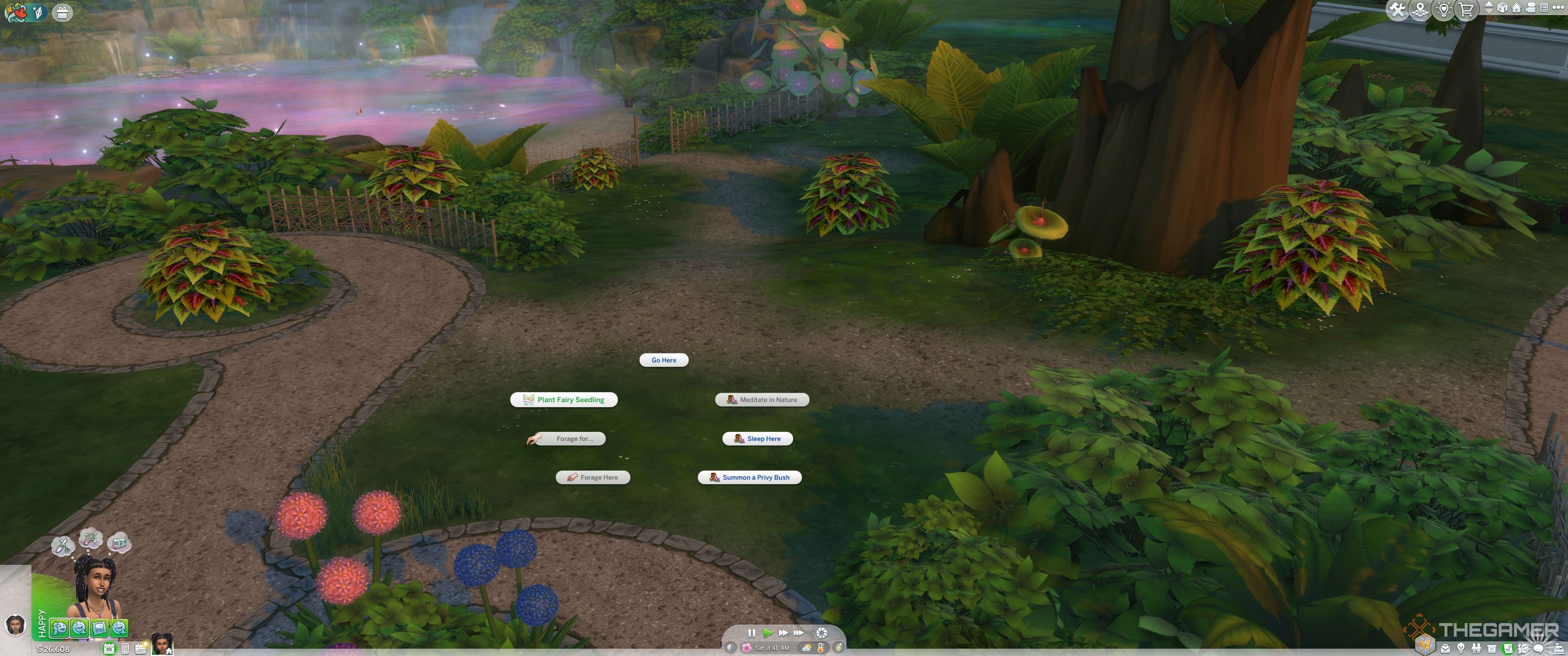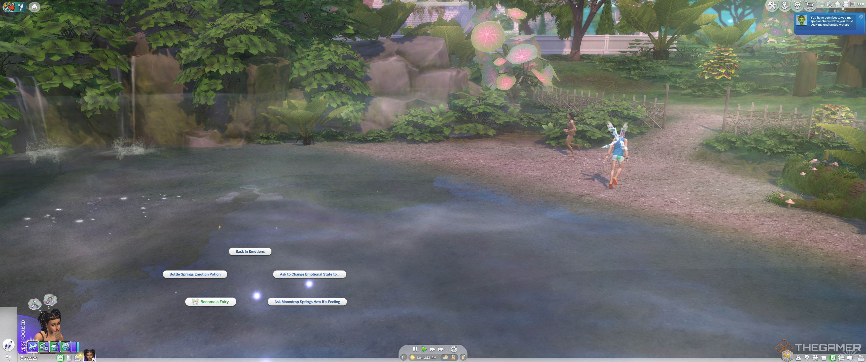 チャームバフができたら、行くだけですMoondrop Springs。する必要があります水をクリックして、海岸から少し離れています妖精になることを選択してください。その後、シムは水に移動します変身。
