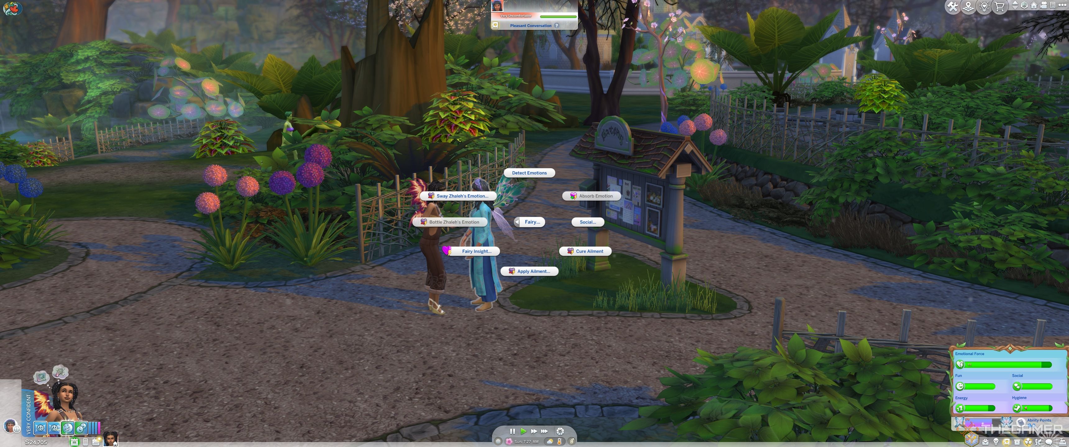 - シムの感情を吸収します- SIMを選択し、次にソーシャルメニュー、選ぶ妖精>感情を吸収します。あなたのシムの気分あなたがターゲットにするシムの気分に合うように変わる可能性があります、そしてそれらはandで残されます不快なデバフ。これが理由です最初に感情を検出しますこれは、賢明な選択ですシムの気分が何であるかを示す絵文字、そして、あなたはそれが必要かどうかを決めることができます。