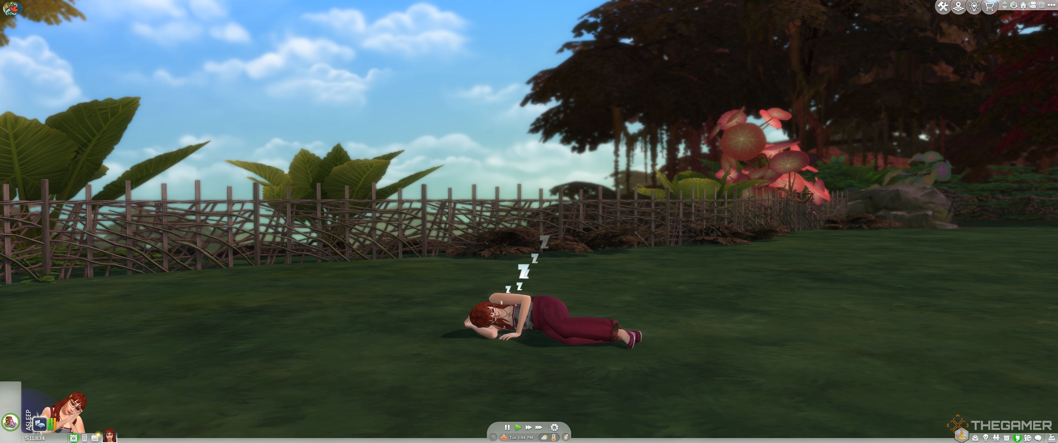 シムはできます地面で眠る屋内または屋外ですが、そうするだけですエネルギーを非常にゆっくりと補充しますそしてまたそうします衛生を減らします。彼らもできます水を止めるのに十分な浅い水に入浴します。これには、池、川、海岸線が含まれます。任意のシム永遠にaを取ることもできますフェアリーハブのスポンジバス、たとえ彼らが妖精ではないとしても。