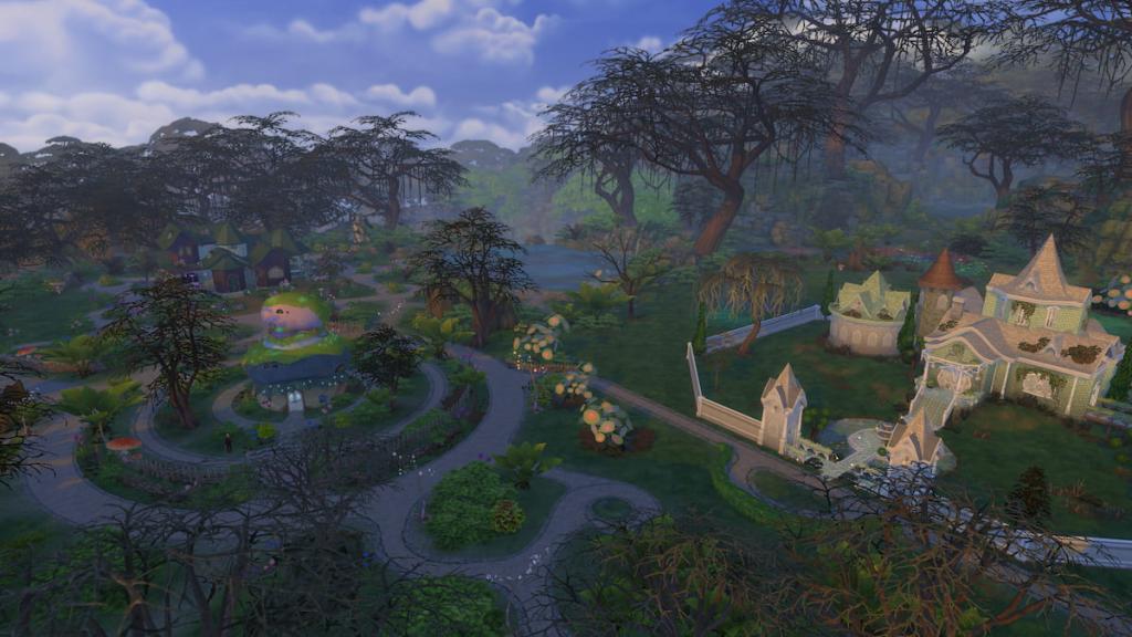 Sims 4:Enchanted by Nature's World、Innisgreenは、このパックの雰囲気にも最適です。神秘的な妖精の冒険のテーマと、平均的な自然愛好家のより控えめなサバイバリストの生活と、他のシムズパックではめったに見られないある程度の効果を融合させます。その内容の多くは、ゲームプレイが関係していない純粋に装飾されていますが、世界の森林内の巨大なノーム、小さな店、さまざまな神社など、他のスポットは相互作用可能です。