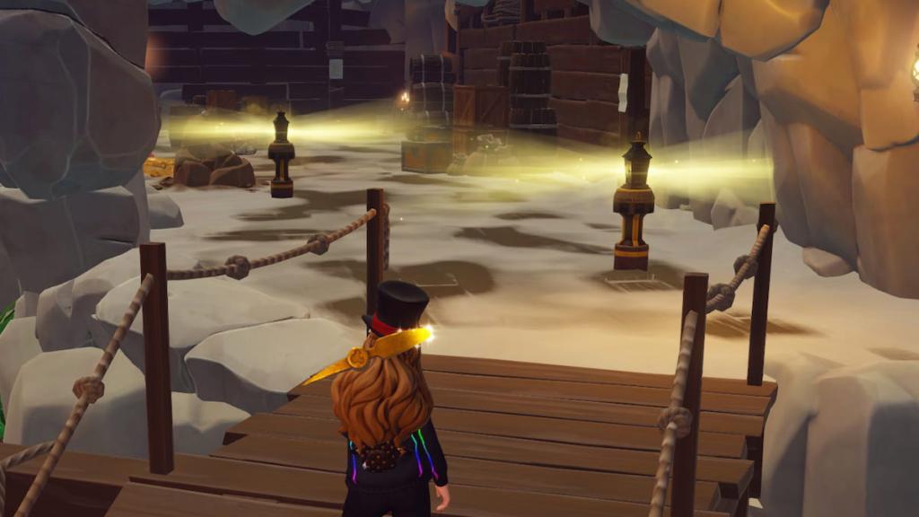 私たちの最後の目標は、海賊の船長を見つけて、彼らの宝箱を主張することです。近くの木製の板張りのランプに向かうと、障壁として機能するいくつかのスポットライトにすぐに気付くでしょう。これらに足を踏み入れると、チェックポイントにテレポートするので、それらを通り過ぎるにはステルスでアジャイルである必要があります。スプリントエネルギーを持つことは、このシーケンス中に大いに役立ちます。