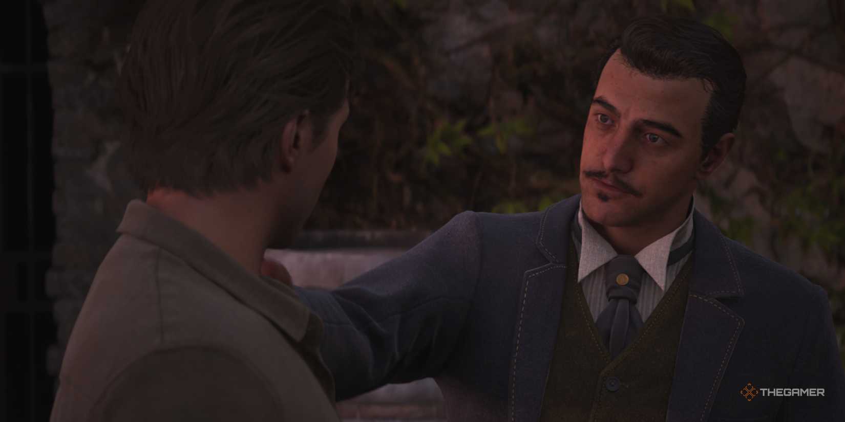 巧みに不安を感じさせるのは、キャラクターを声に出しているアンソニー・スコルディです。彼は英国出身で、劇場で歴史があります。彼は、アサシンクリードオデッセイのピタゴラスであり、マスエフェクト3のリヴァイアサンであるため、彼はビデオゲームの声の演技に慣れていません。さらに、彼は他のゲームに参加しています。彼はまた、テレビで長いキャリアを積んでおり、1973年のプライム容疑者などに登場しています。