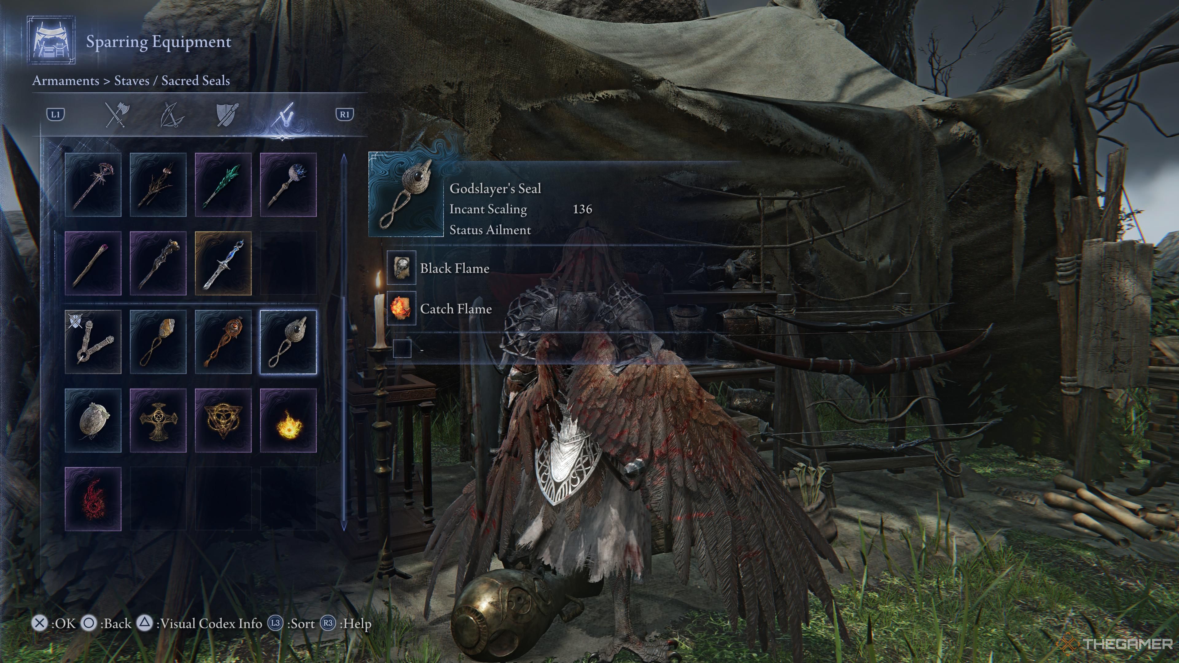 神聖なアザラシに関しては、ゴッドレイヤーのアザラシは実際には非常に一般的なものであり、それは素晴らしいことです。呪文の1つは変更の責任ですが、常に黒い炎を保持します。そして、エルデンリングのように、これはまだ同じくらい強力です。