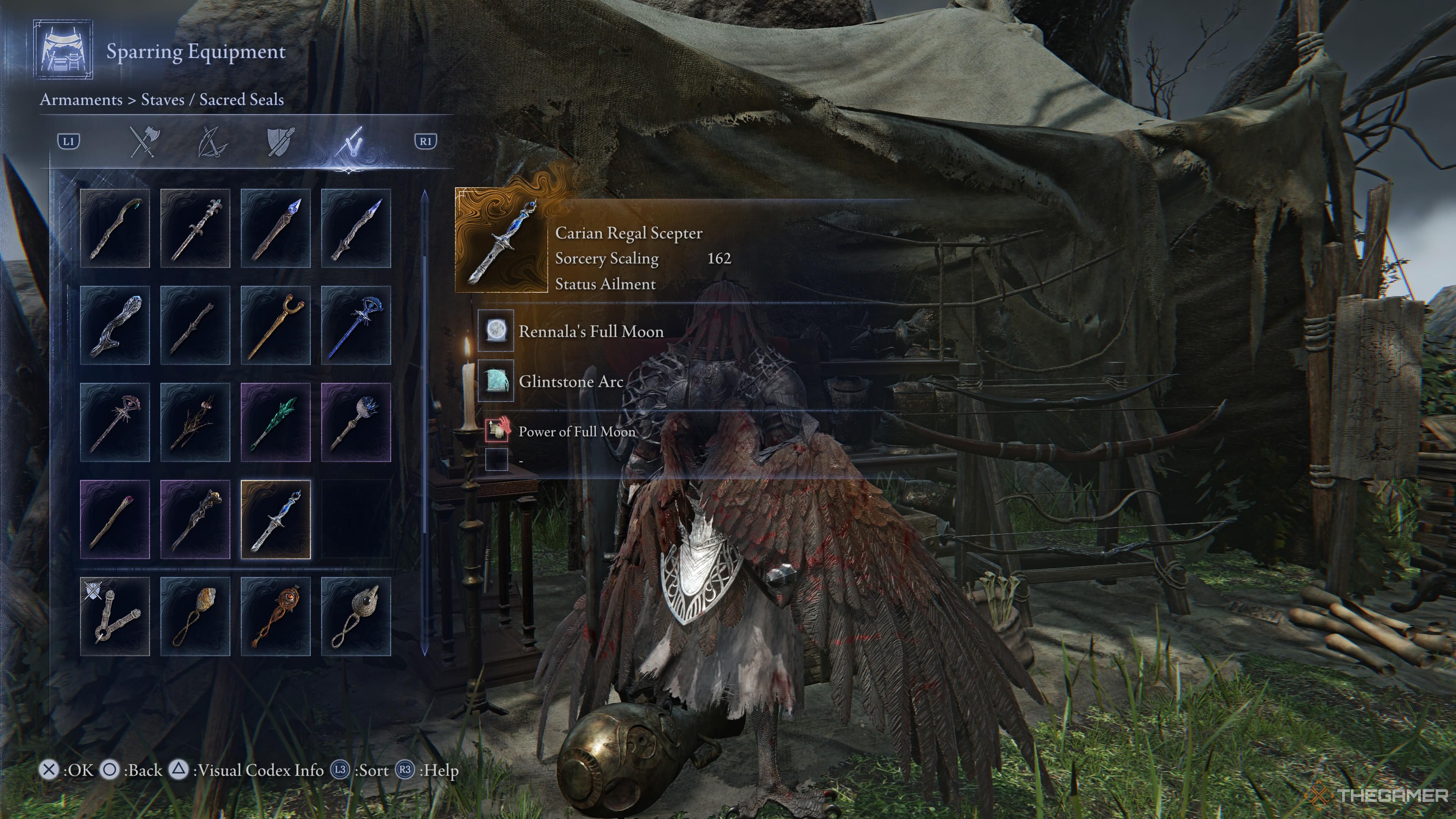 Carian Regal Scepterは伝説的な武器であり、Rennalaの満月であるその魔術師の1つだけが登場することが保証されています。ただし、魔法のキャラクターをプレイしていて、これに出くわす場合は、ロードアウトへの即時のエントリである必要があります。
